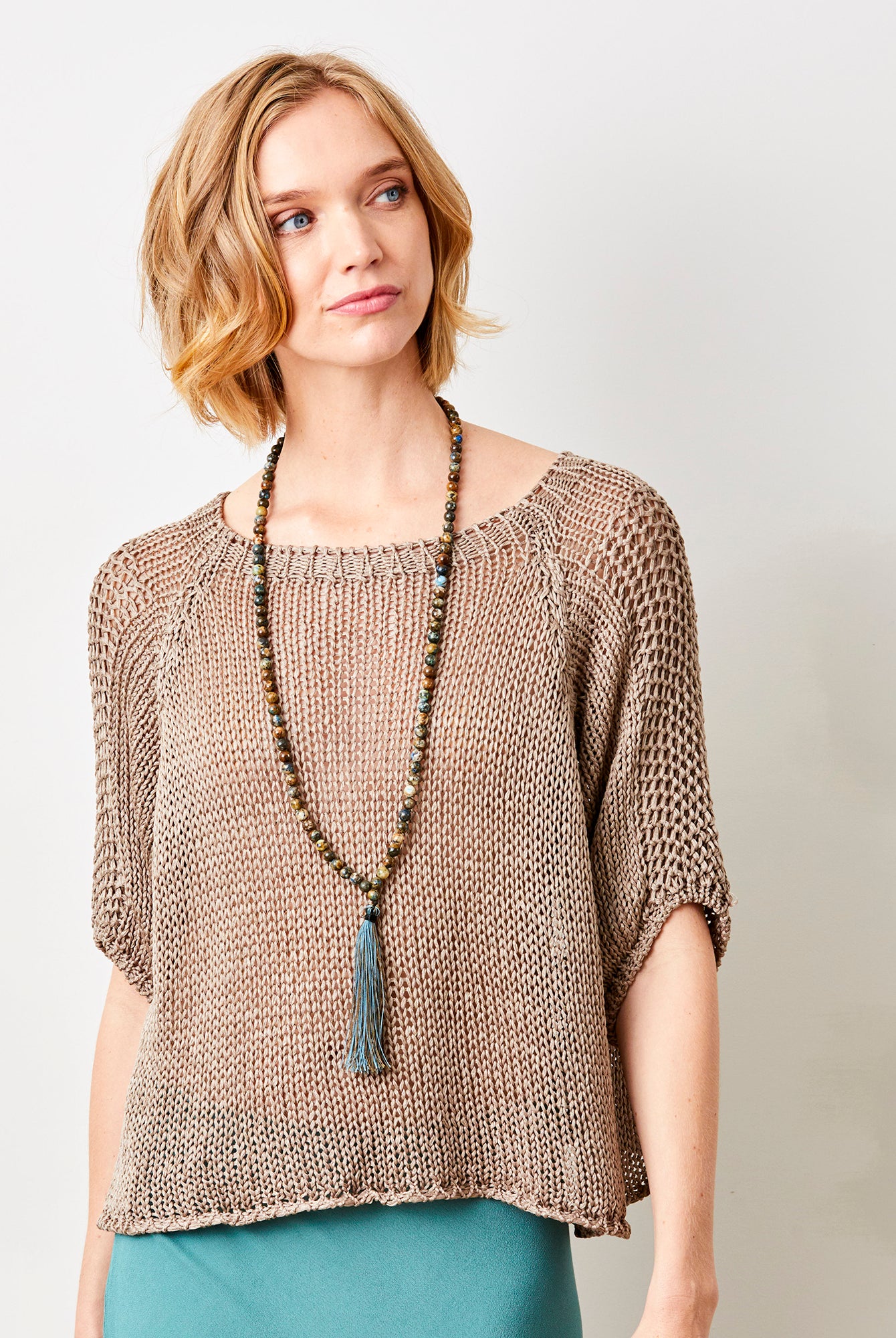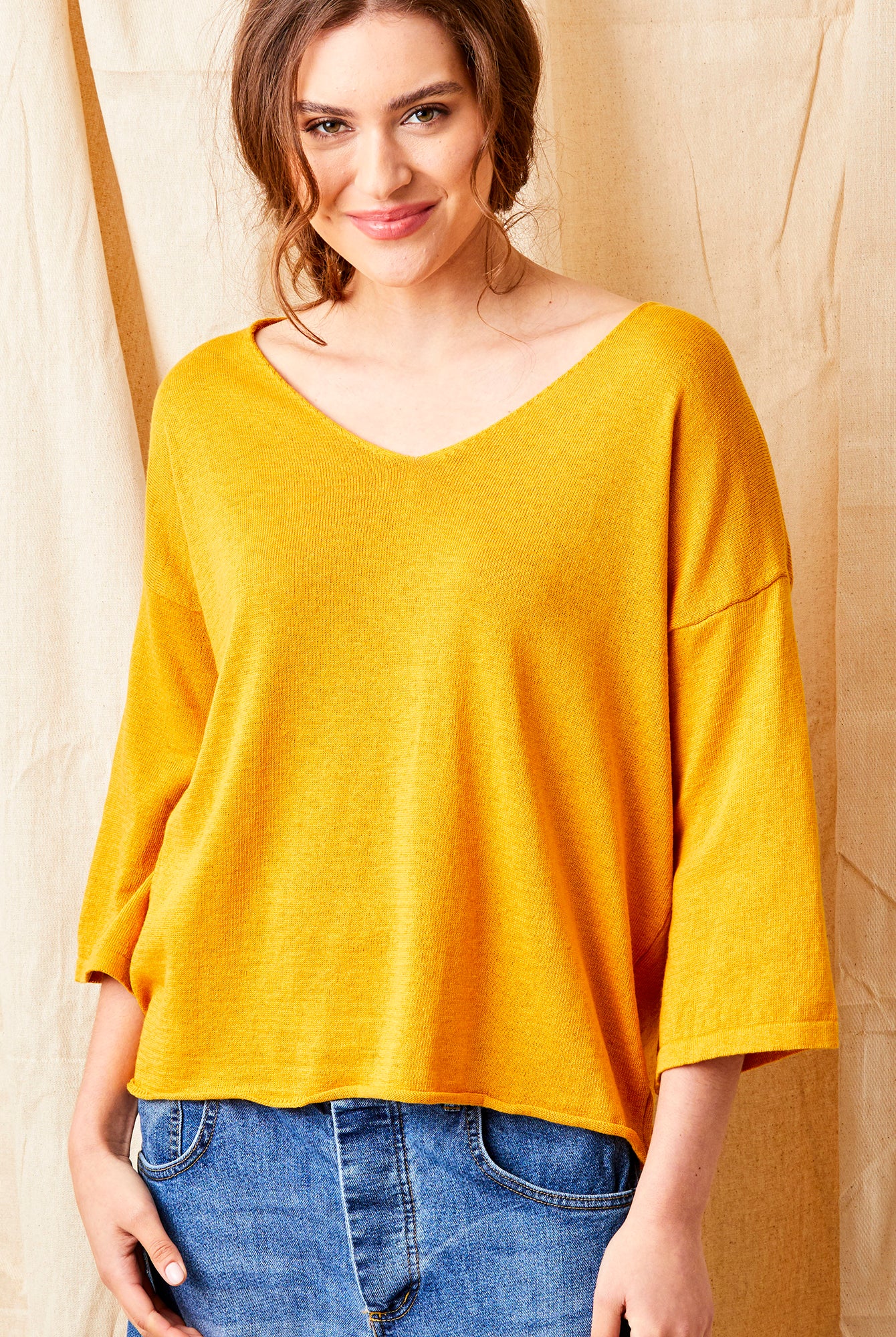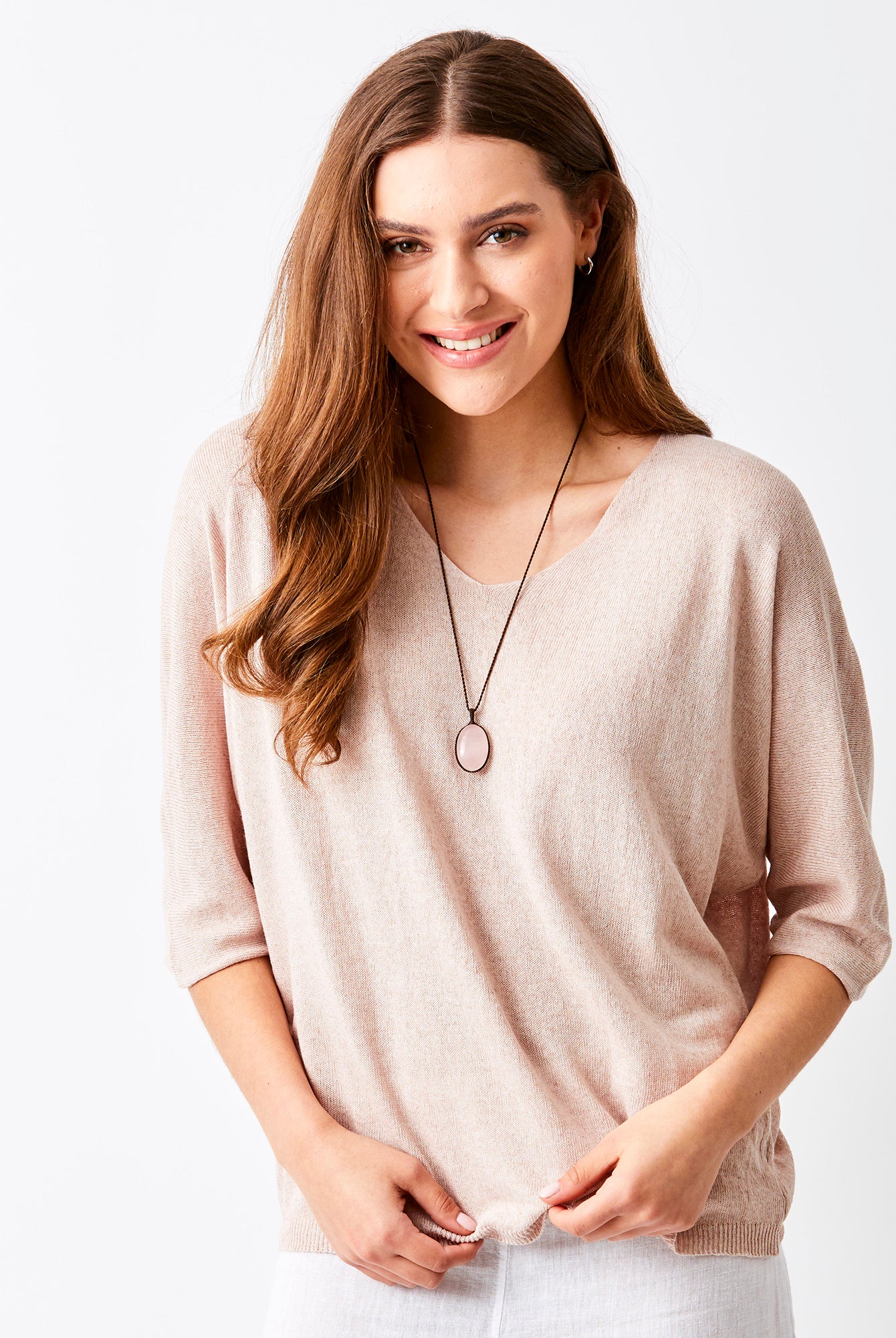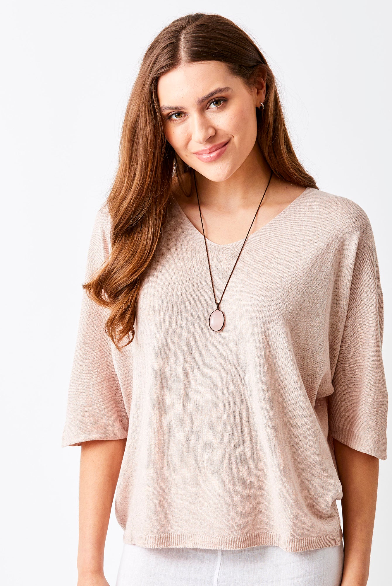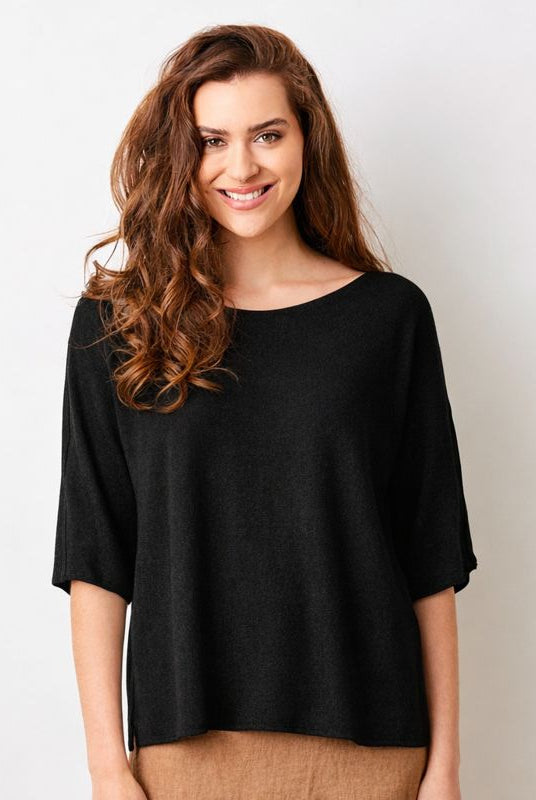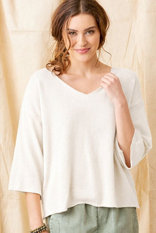 Fara Linen Mix Wide Neck ¾ Sleeve Sweater