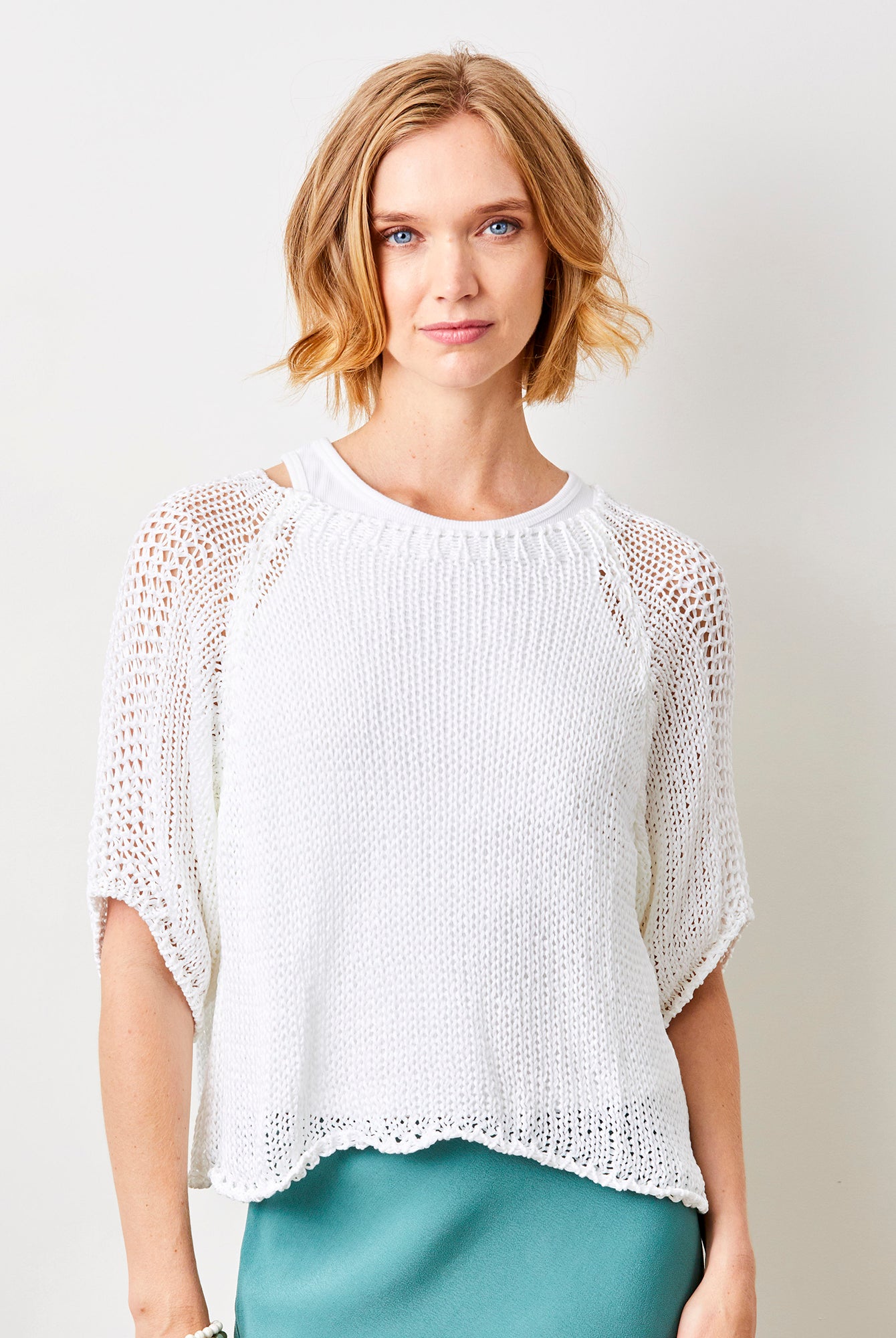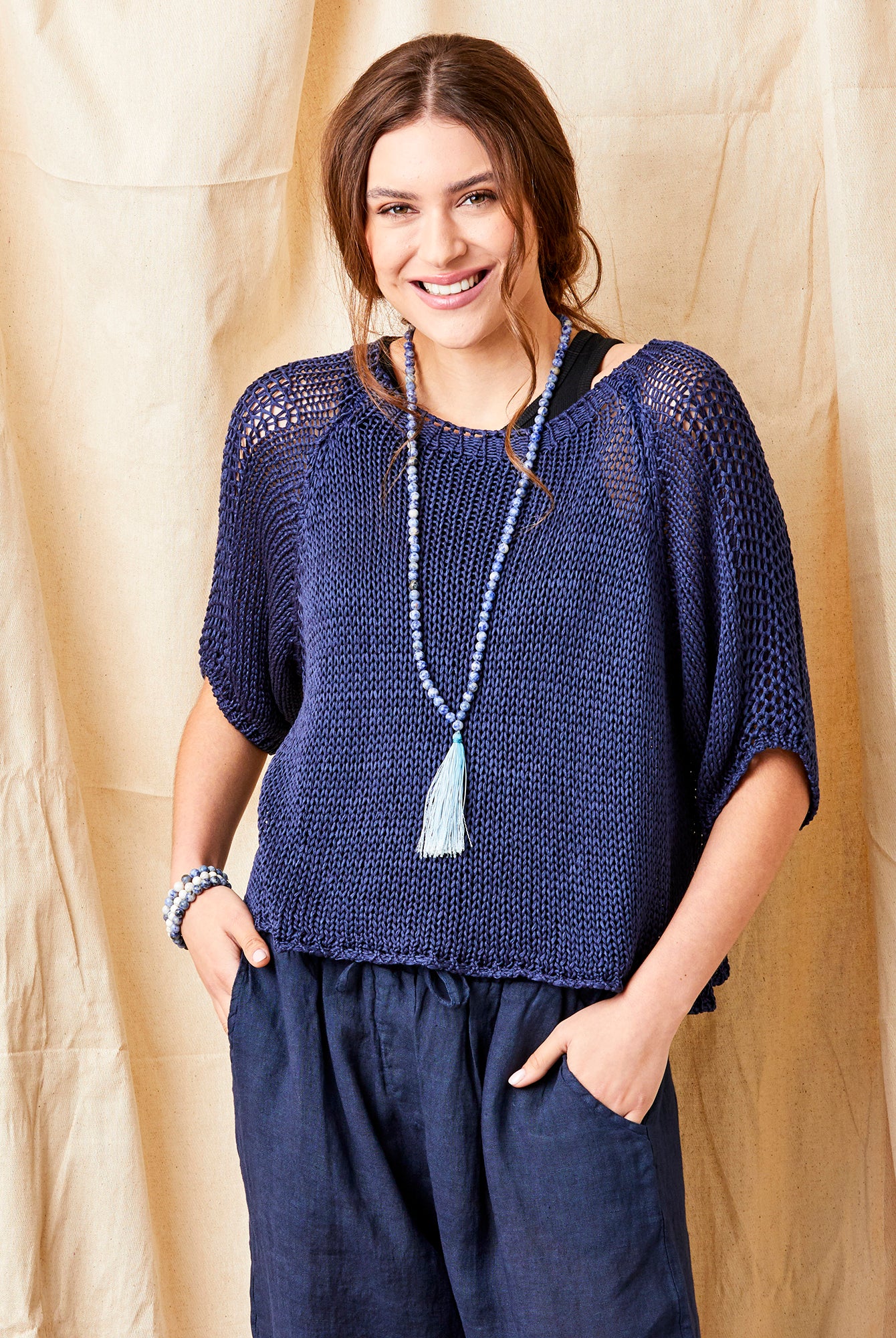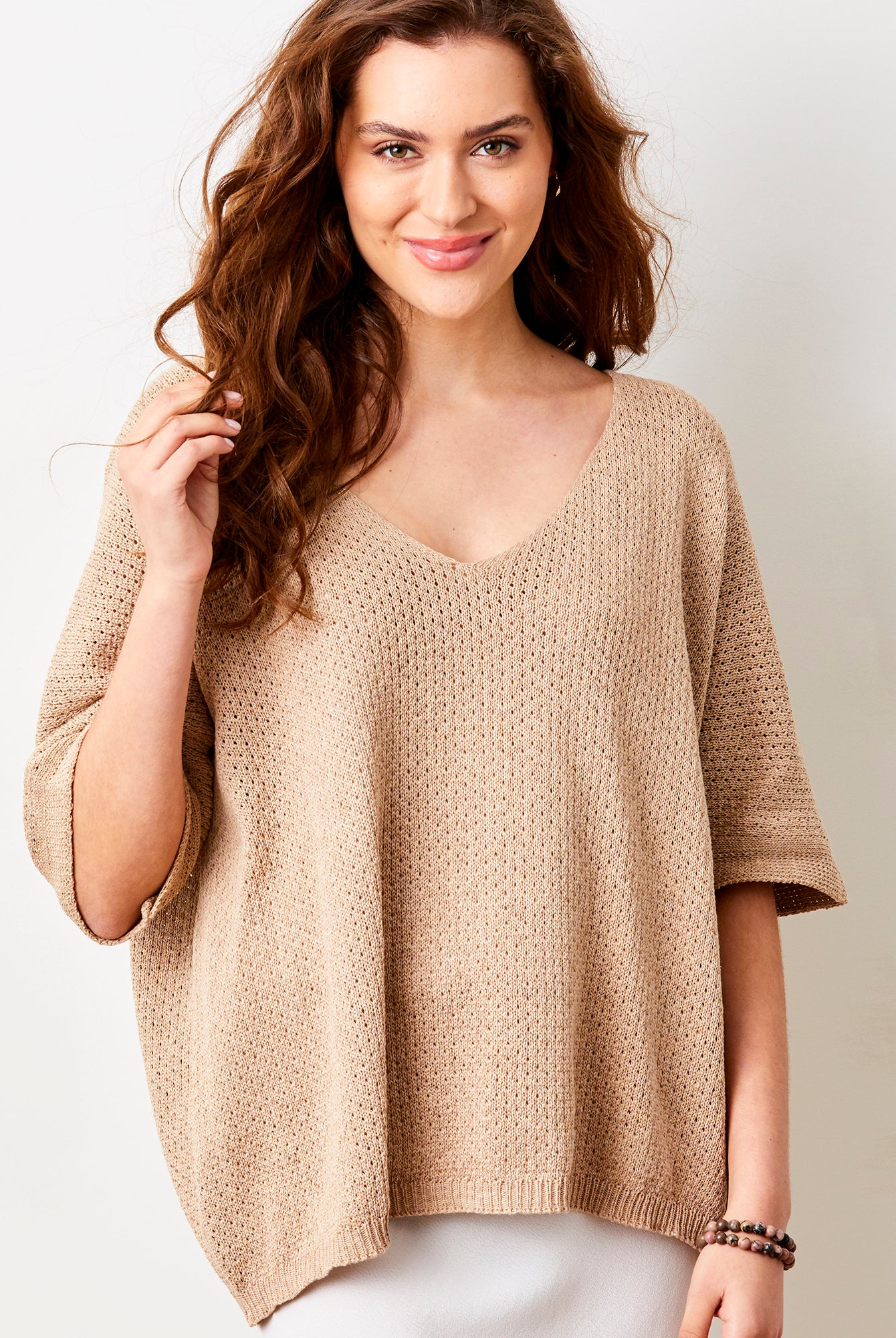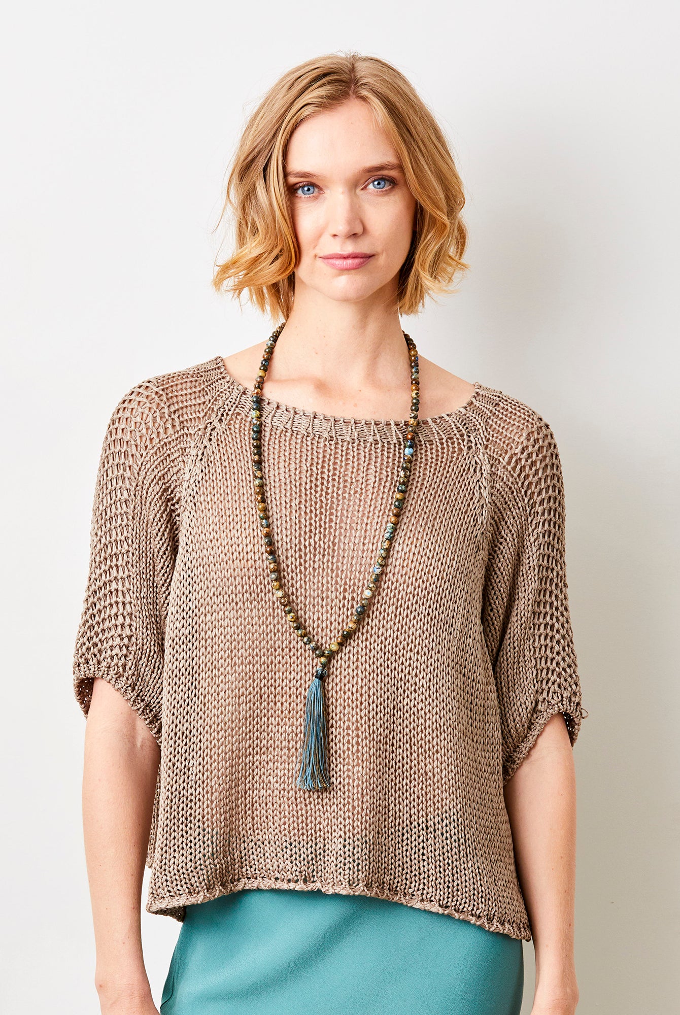 Fara Linen Mix Wide Neck ¾ Sleeve Sweater