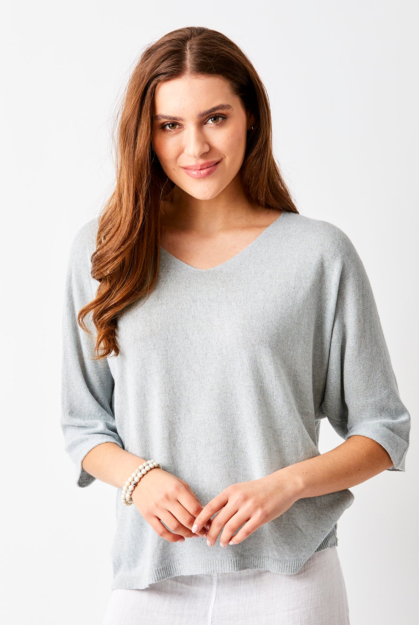 Lenny Light Double V Neck Batwing Knit Sweater