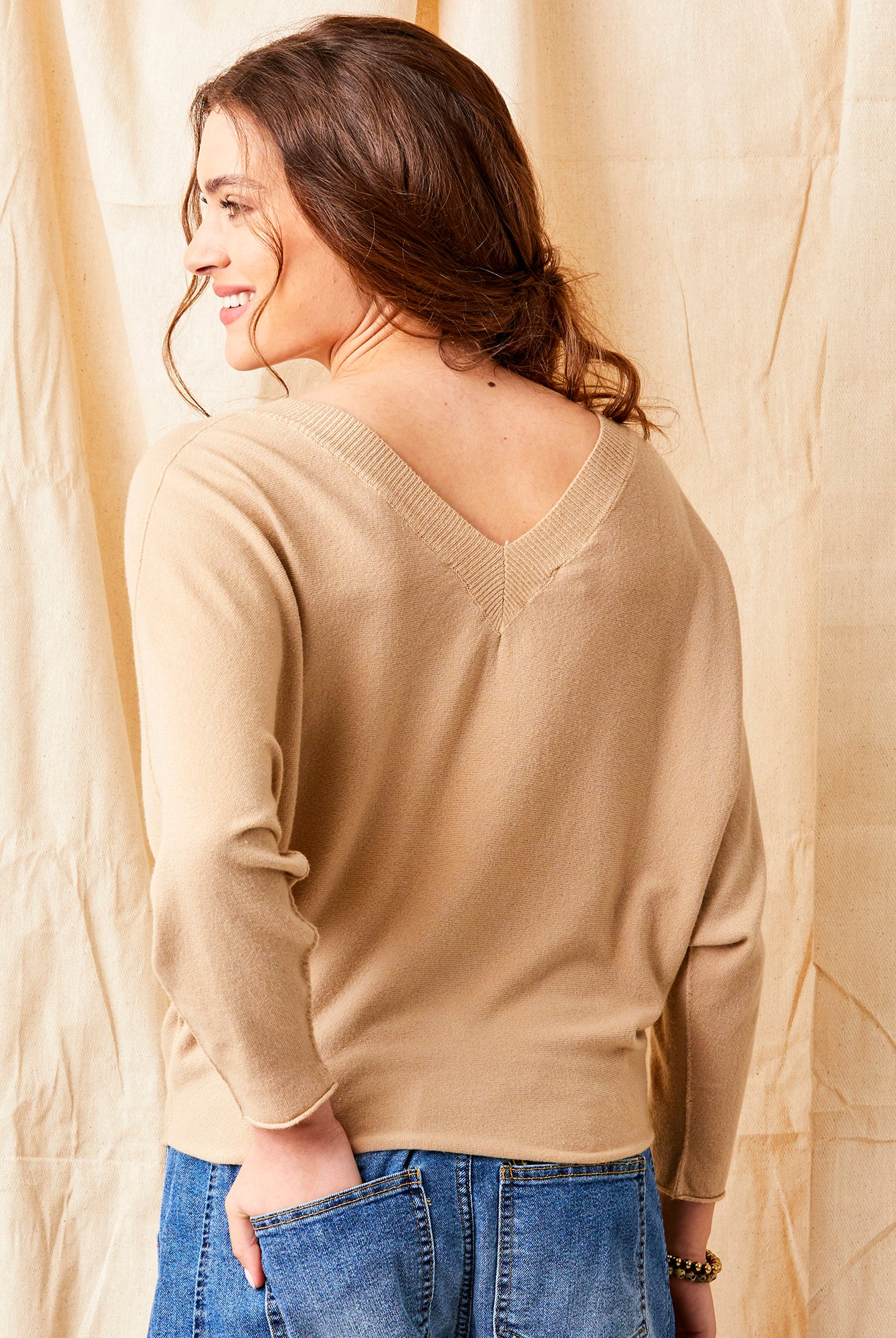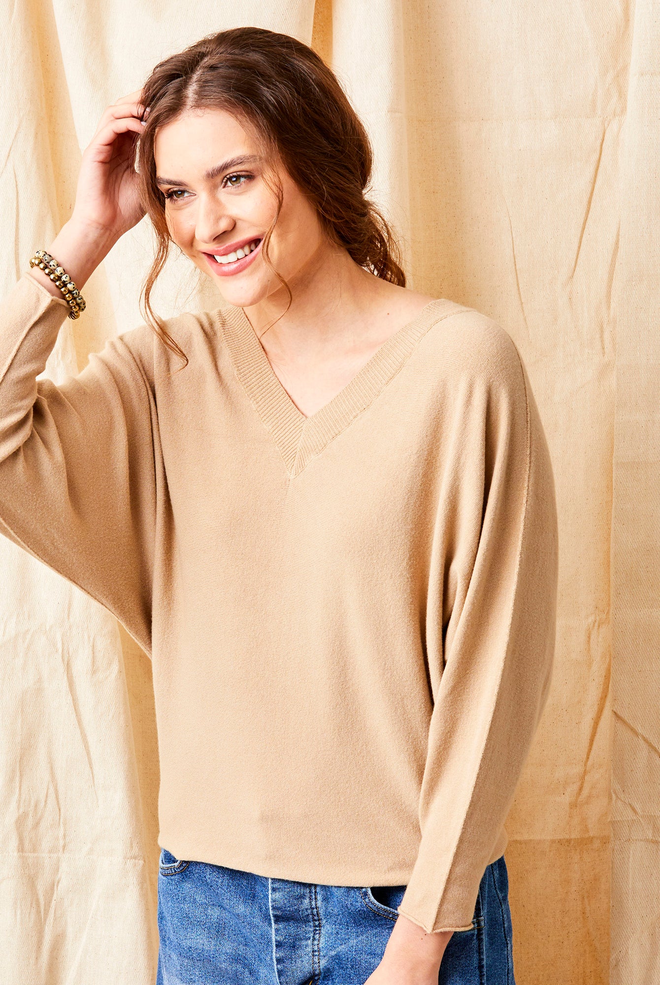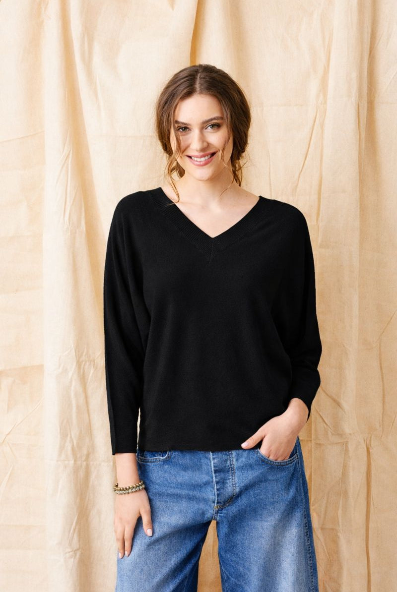Fiorenza V Neck Sweater With Wide Sleeves