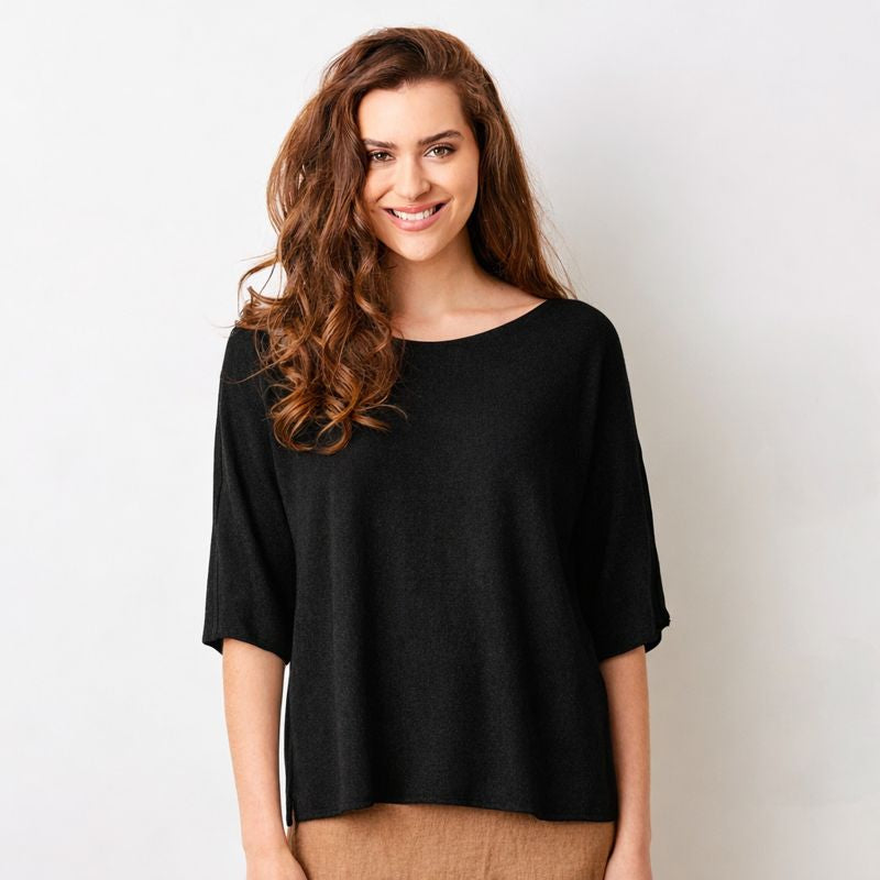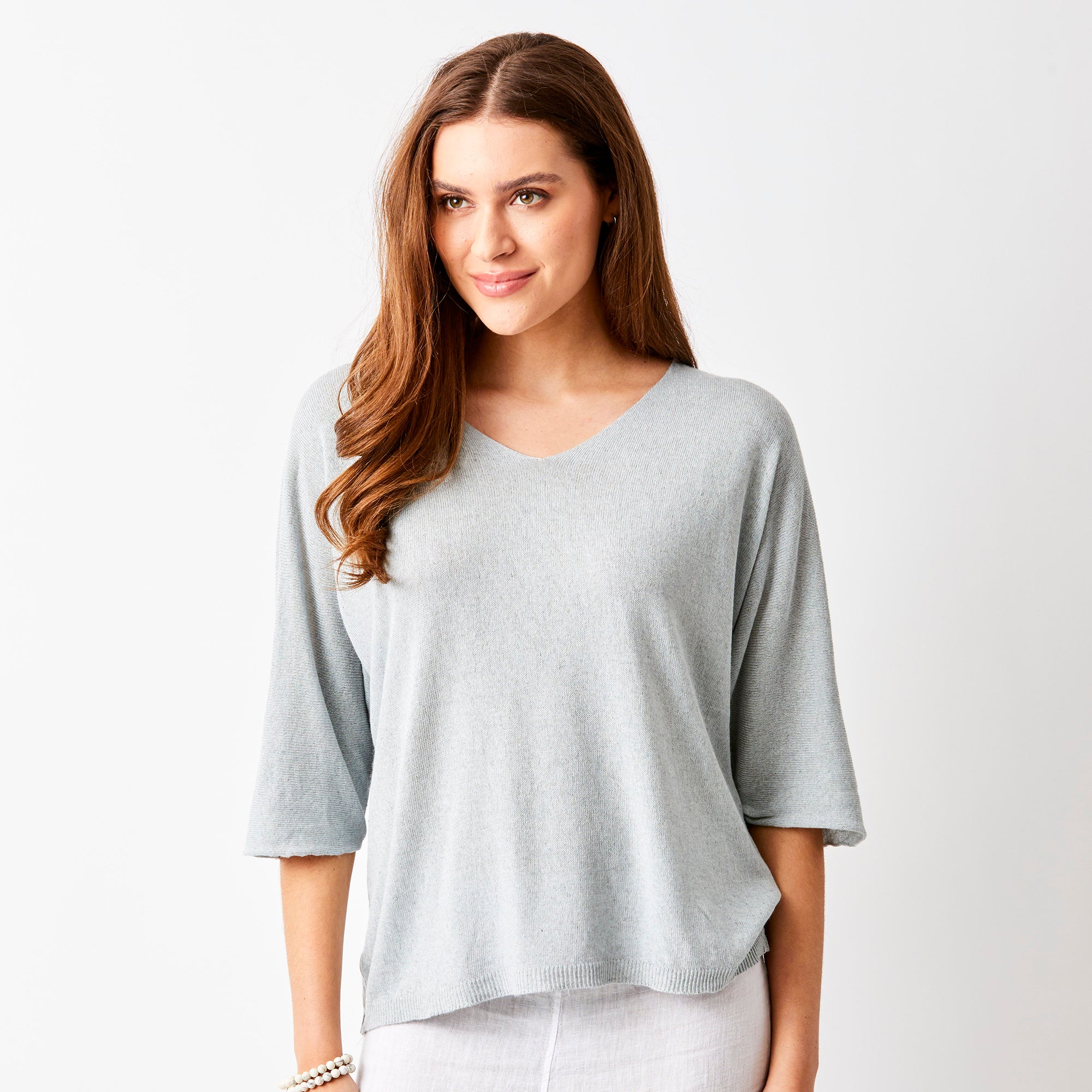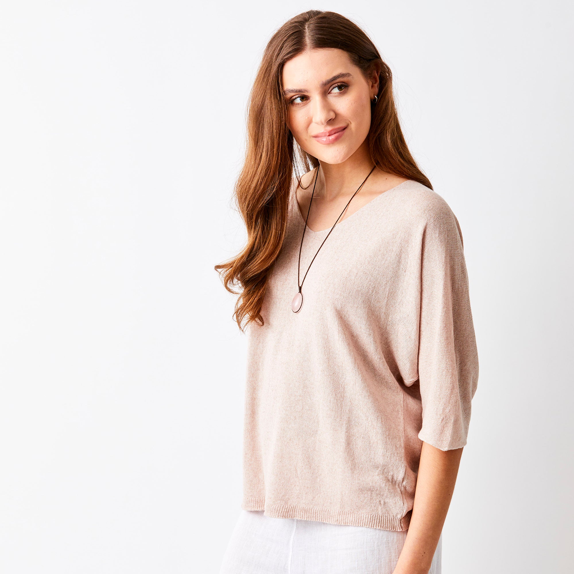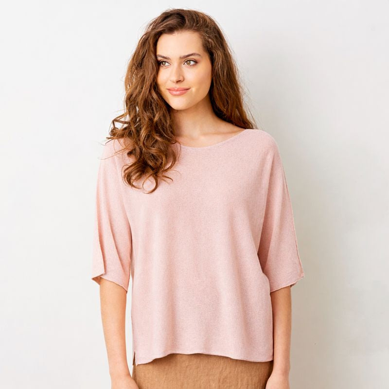 Fara Linen Mix Wide Neck ¾ Sleeve Sweater
