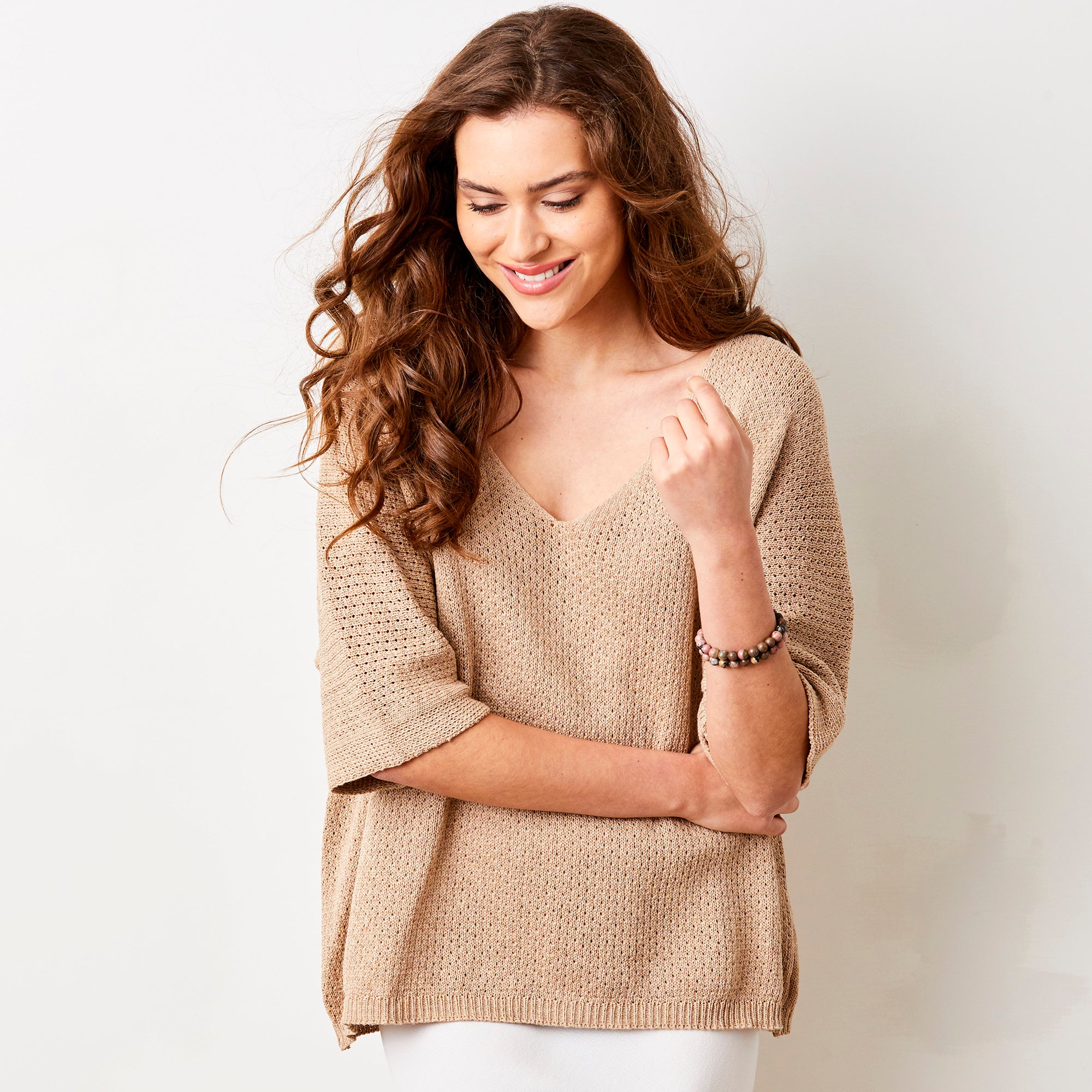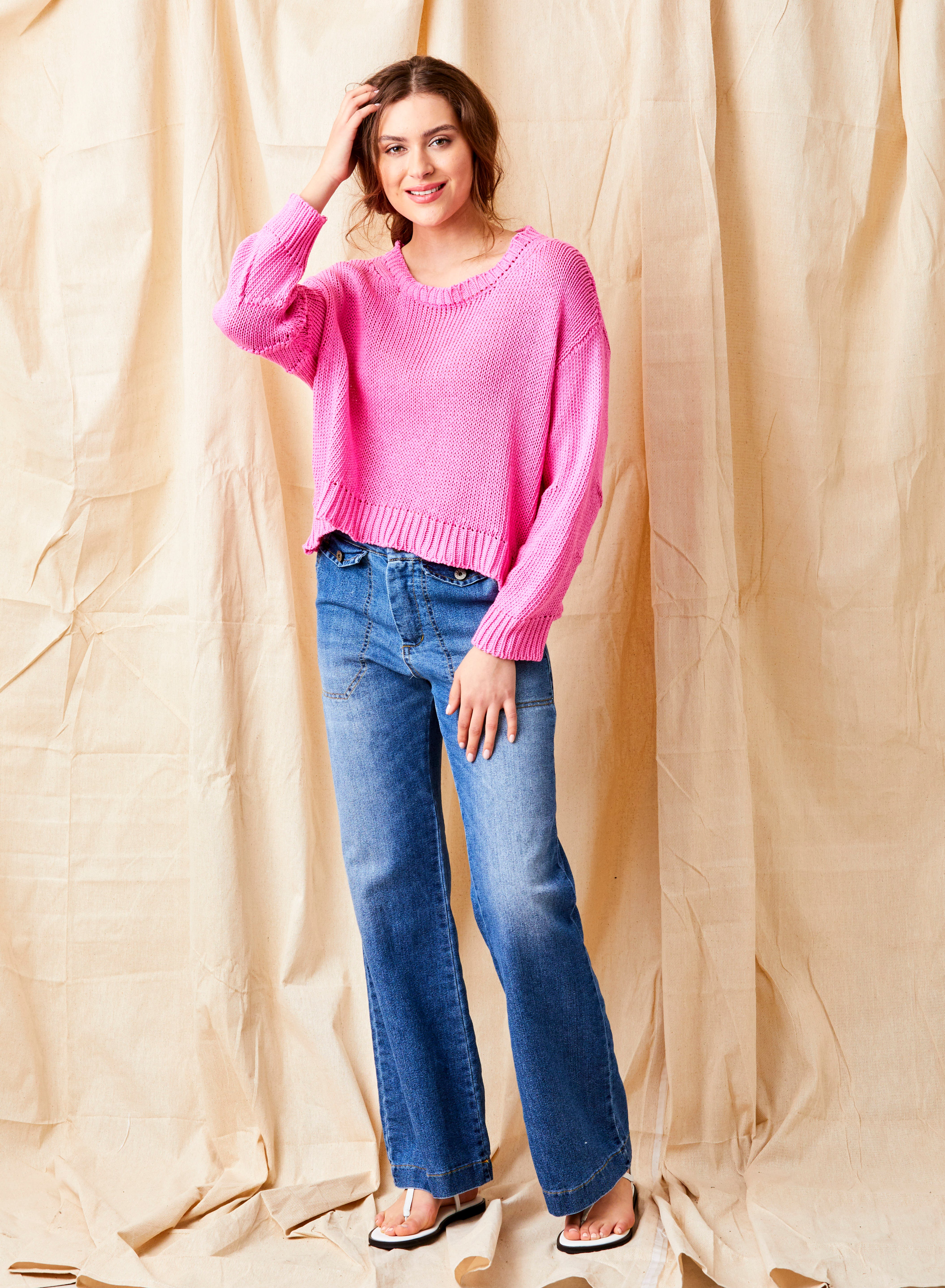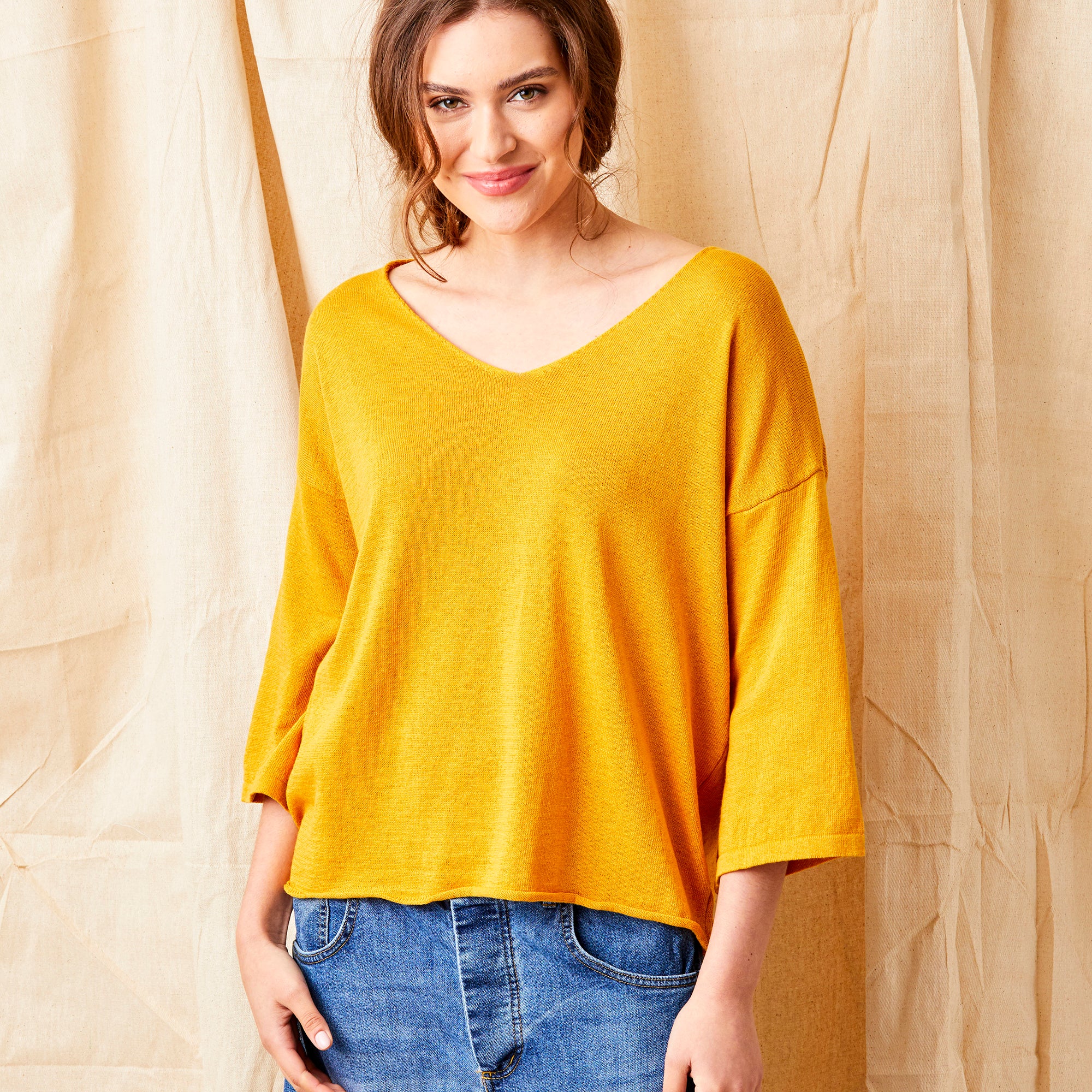 Fara Linen Mix Wide Neck ¾ Sleeve Sweater