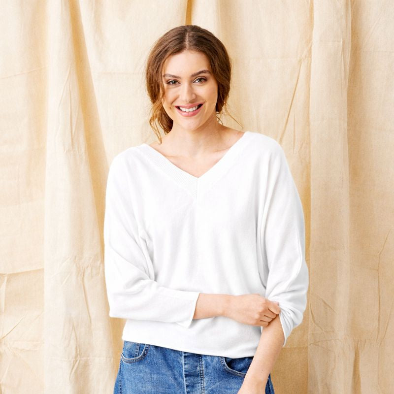 Lenny Light Double V Neck Batwing Knit Sweater