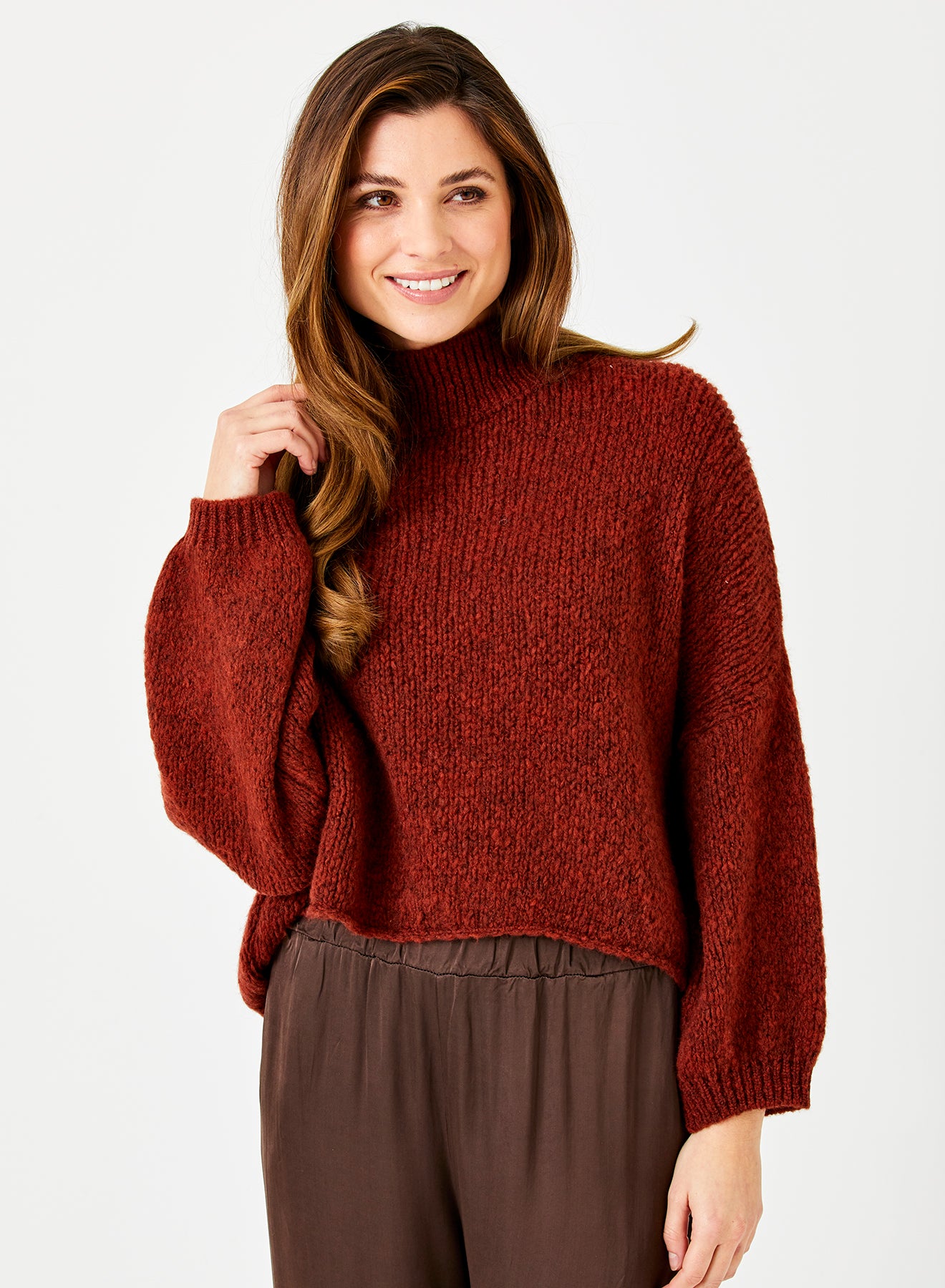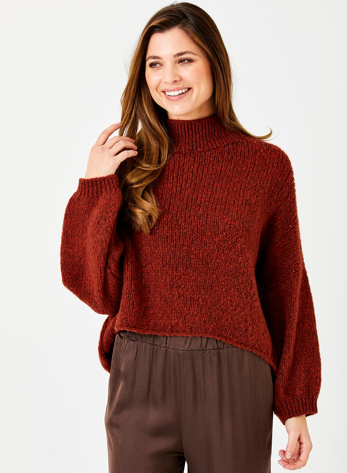 Fabian High Neck Hi Lo Soft Knit Sweater