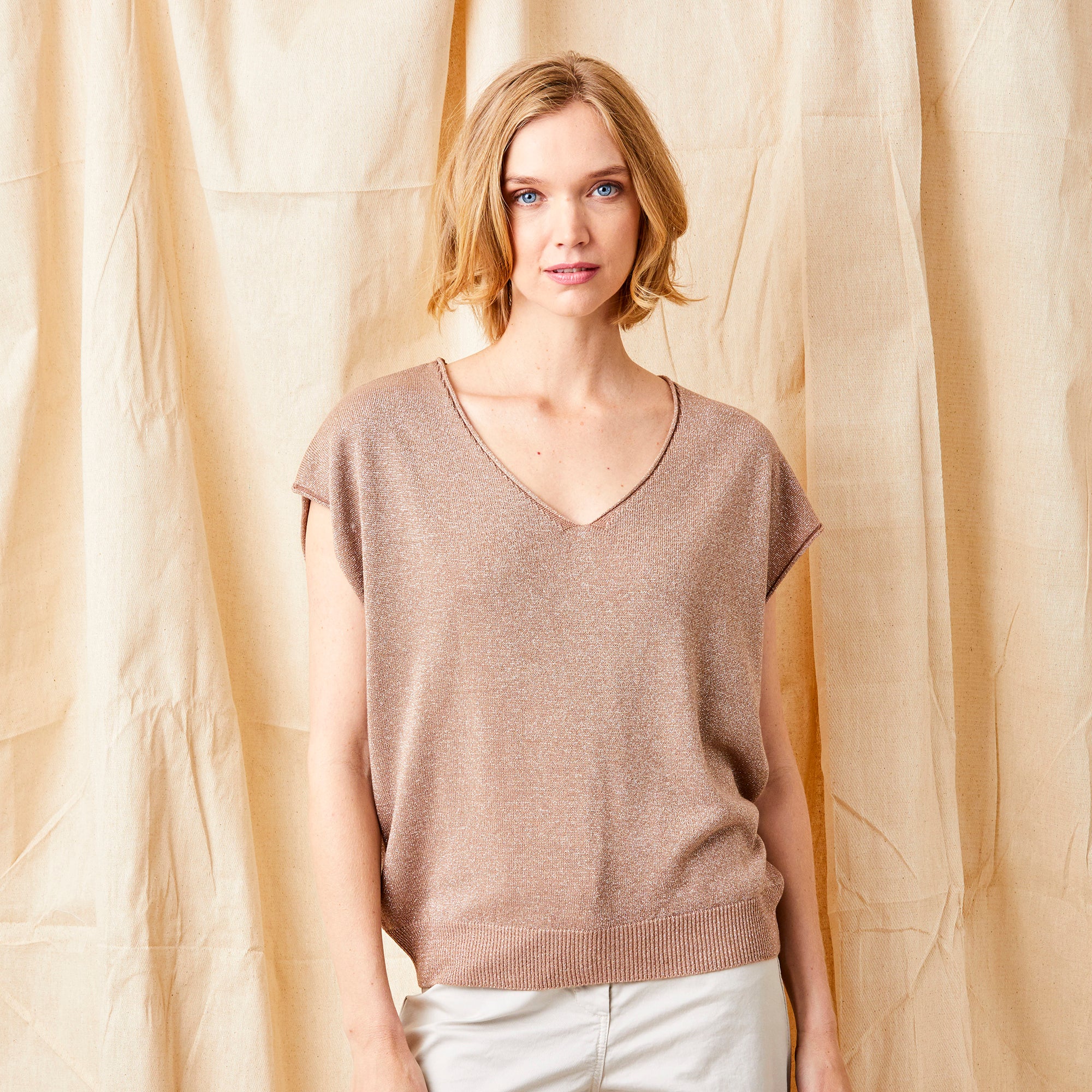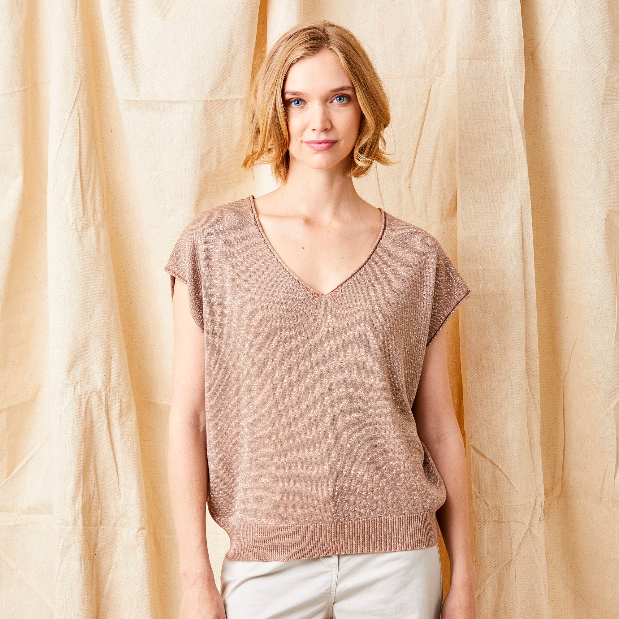 Faline V Neck Sparkle Sleeveless Knit