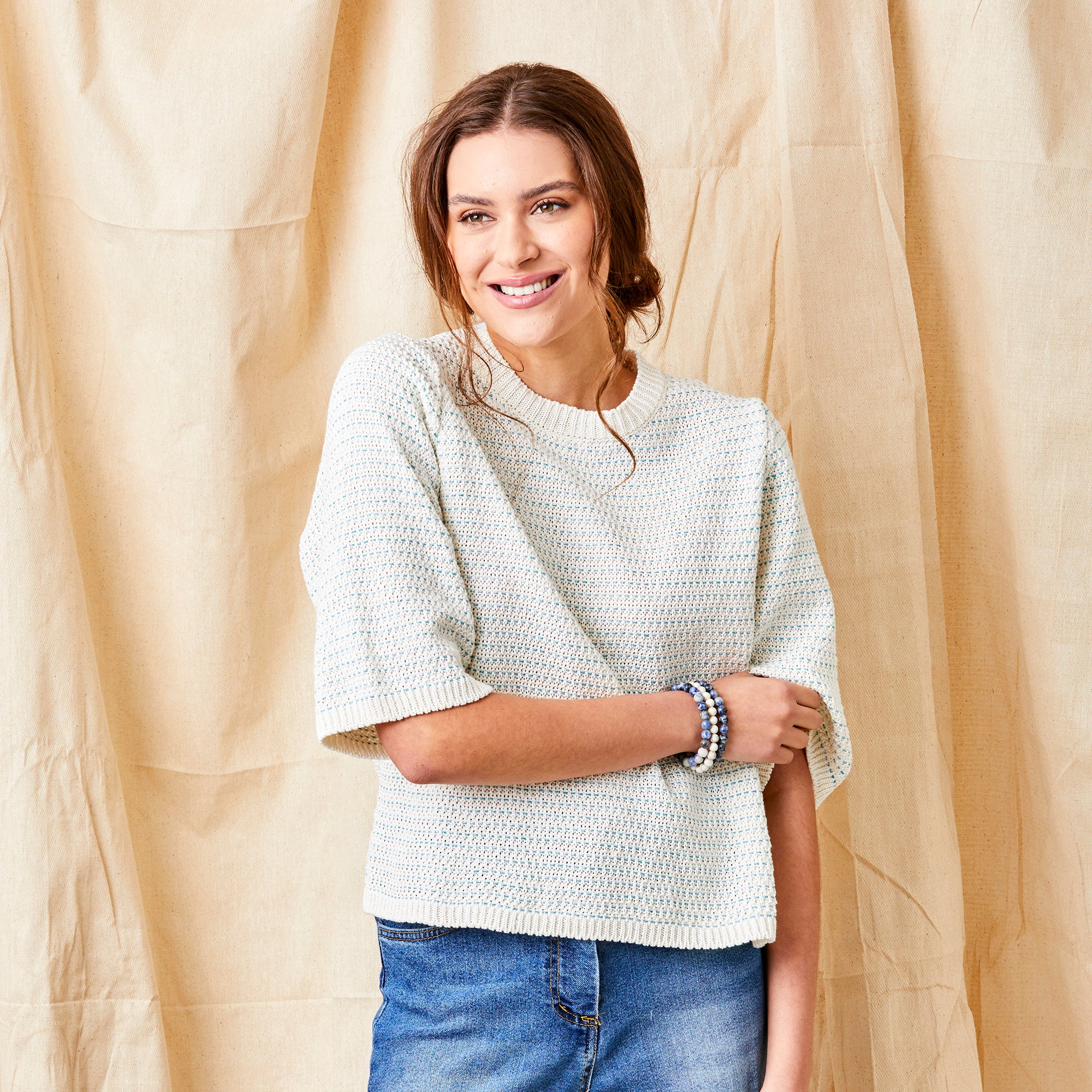 Faylin Open Weave Round Neck Knit with Stripes