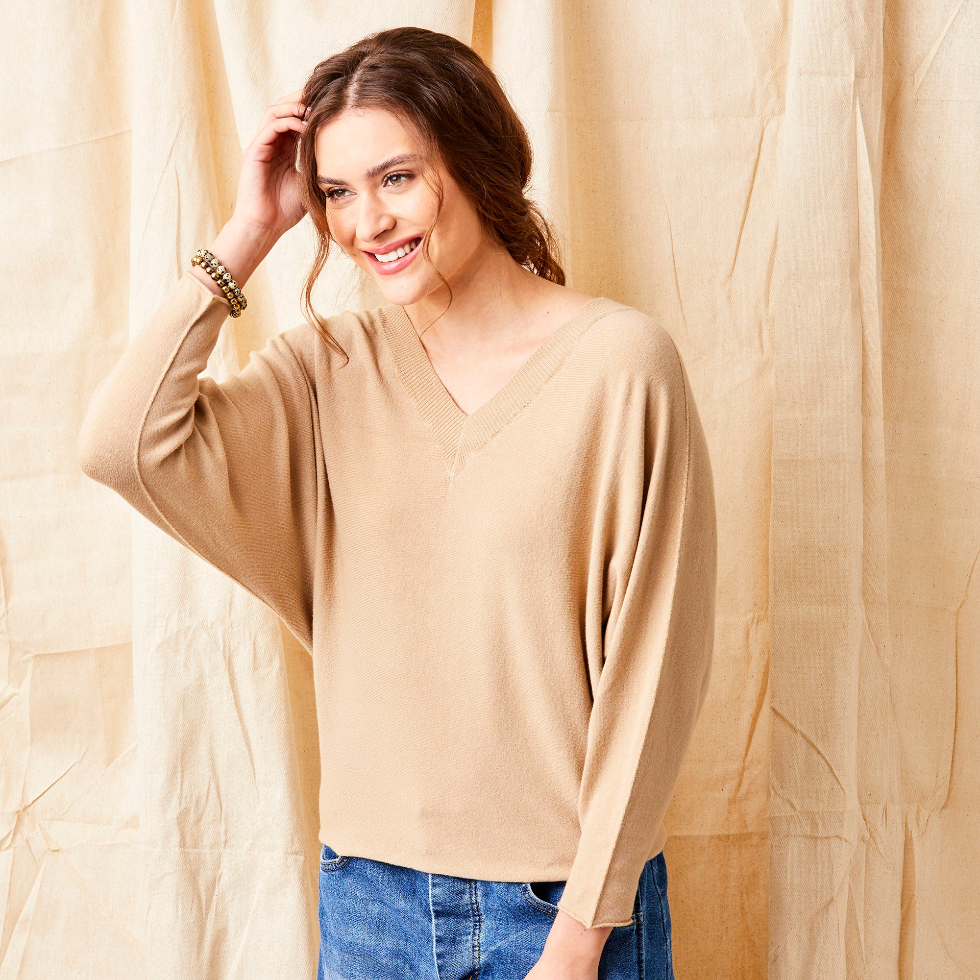 Fiorenza V Neck Sweater With Wide Sleeves