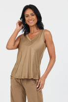 Elevate your everyday wardrobe with this sophisticated satin cami, designed for effortless elegance. The flattering V neckline creates a refined silhouette, while the luxurious satin front catches the light beautifully. Practical jersey back ensures comfort and breathability for all-day wear. Perfect layered under blazers or worn solo, this versatile piece transitions seamlessly from office to evening. A timeless essential that delivers both style and wearability.