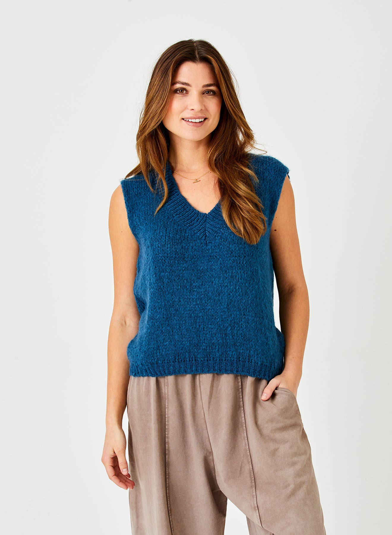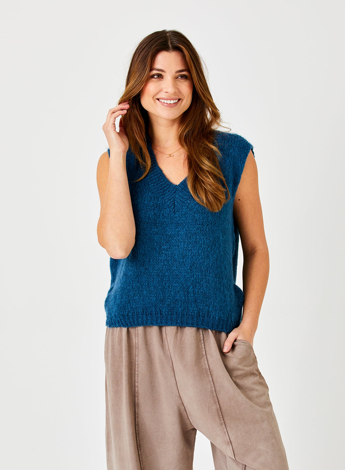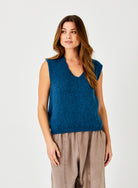 The Fedora tank isn't just a piece of clothing—it's an experience. Perfect for layering under blazers or wearing solo to make a statement, it effortlessly transitions from daytime chic to evening glamour. Elevate your style with a touch of grace and let the Fedora tank become your new favorite essential. Woven from an indulgent blend of fibres, this tank drapes with a whisper of elegance and unparalleled softness. The V-neckline is not just flattering; it's a canvas for your confidence, accentuating your look with a subtle, yet captivating allure.