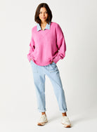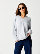 Perfect for any occasion, the Lizzy V Neck Boxy Soft Knit looks just as great with joggers for a relaxed, casual vibe as it does with tailored trousers for a more sophisticated outfit. Layer it over a shirt to add a touch of elegance to your look. The Lizzy V-Neck Sweatshirt is a must-have for your wardrobe and will be a style you reach for season after season.