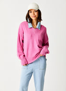The Lizzy V-Neck Boxy Soft Knit combines comfort with a preppy look, making it an ideal choice for transitional layering. Featuring a ribbed hem and trim at the V-neck, this sweatshirt offers a smart, polished appearance. Its versatile design allows it to be styled effortlessly, whether you're dressing up or down.