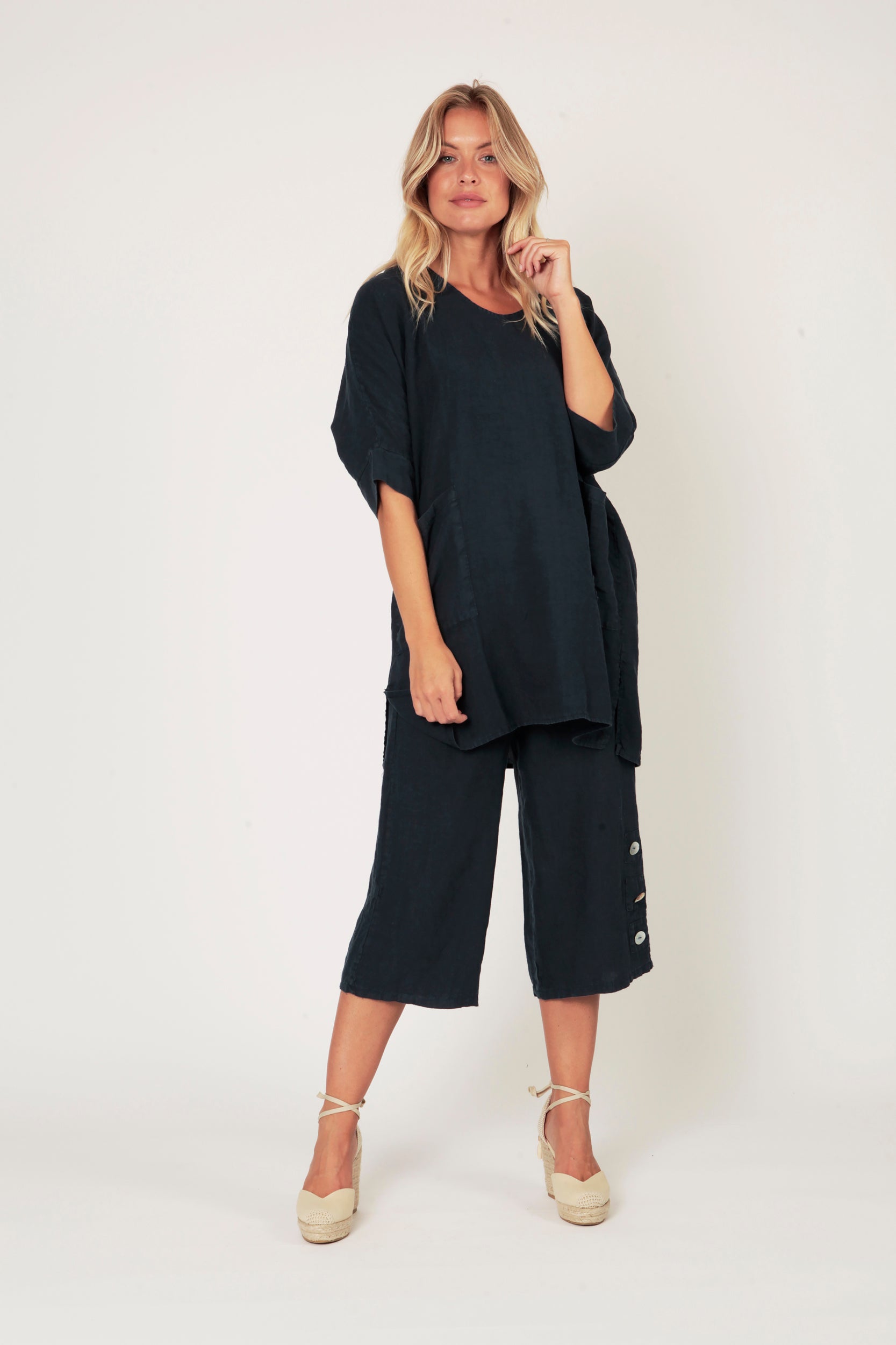 Looking for a stylish, summery look that’s destined to impress? Our Sariah linen culottes are just the ticket. These pants will have you reaching for your sunnies, securing your wedges and hitting the town with confidence. So go on – it’s date night!