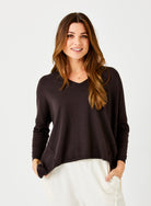 Stay cozy and stylish with the Tina V Neck Hi Lo Hem Knit Sweater. Its soft, comfortable knit is perfect for stepping into cooler nights, offering warmth without sacrificing a flattering silhouette. The hi-lo hem adds a modern touch, making it an easy choice to layer and elevate your seasonal wardrobe.