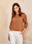 Add a playful twist to your wardrobe with the Yossy Bengaline Balloon Sleeve Stretch Top. Featuring voluminous balloon sleeves and a comfortable stretch fabric, this top combines style and ease for a fun, flattering look that moves with you. Perfect for adding a touch of flair to any outfit!