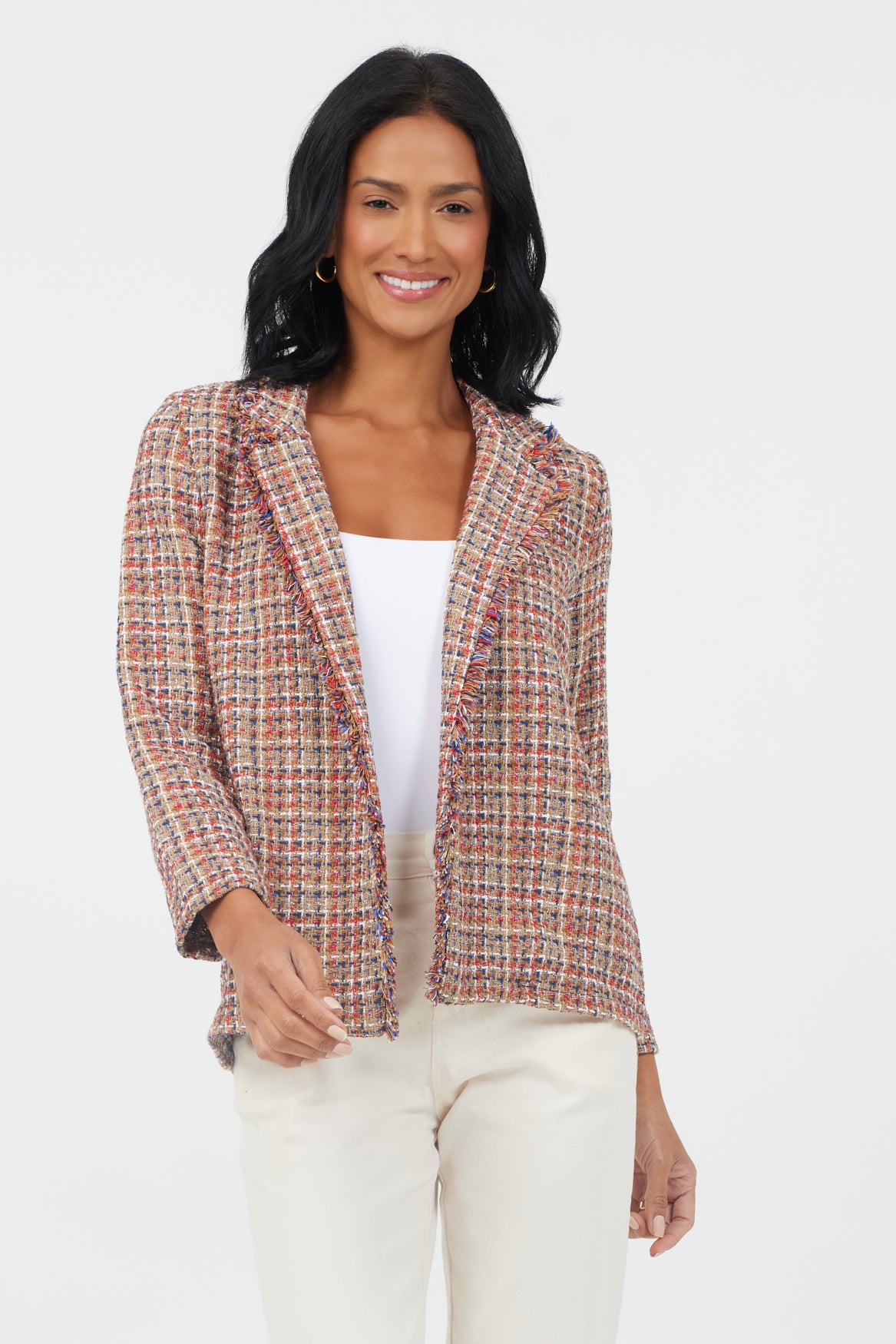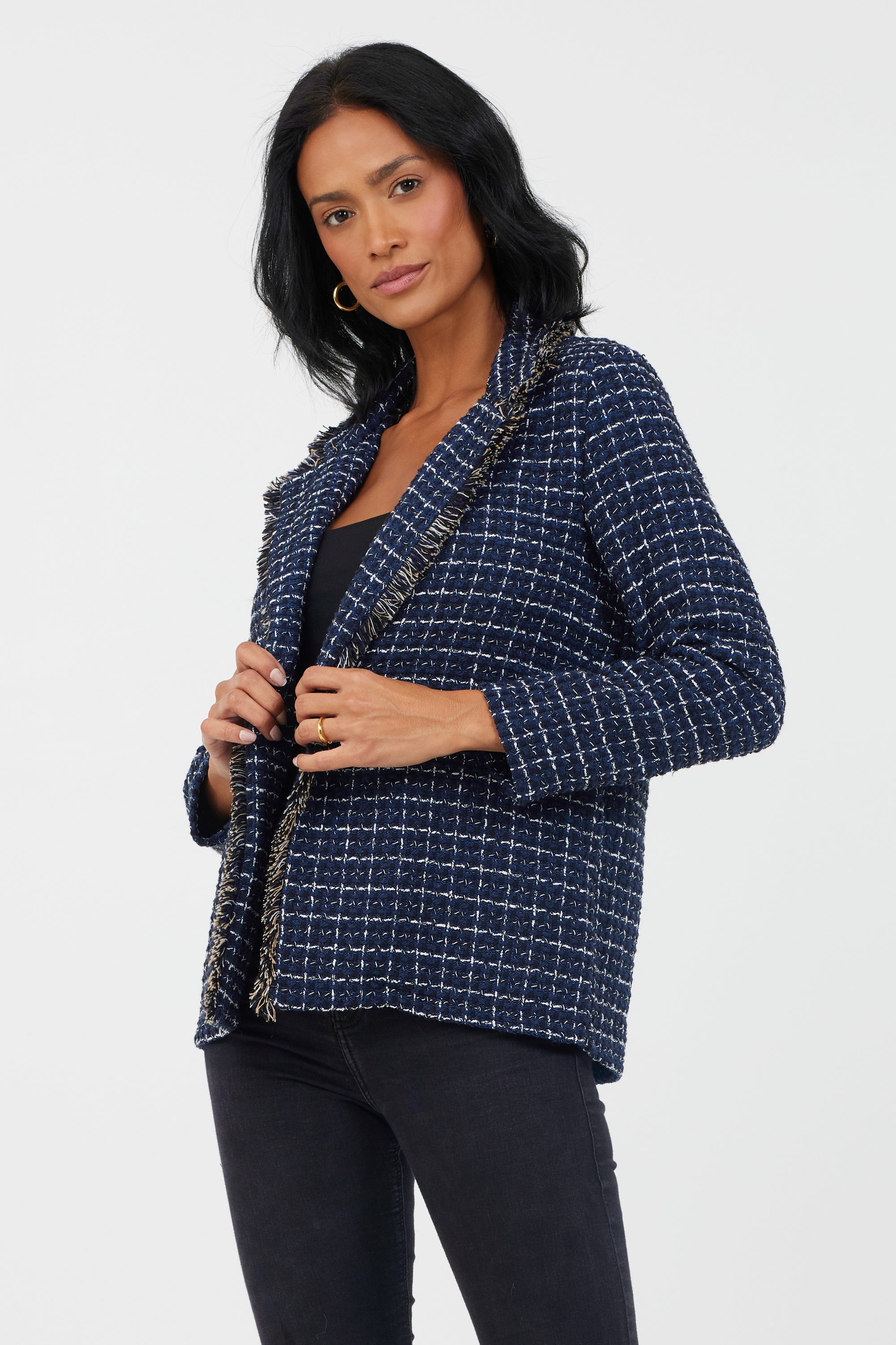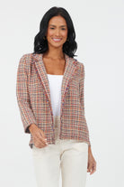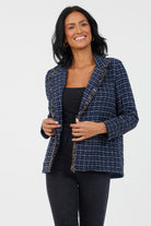 Jasmeena Frayed Trim Checked Blazer