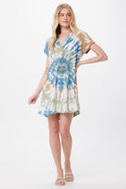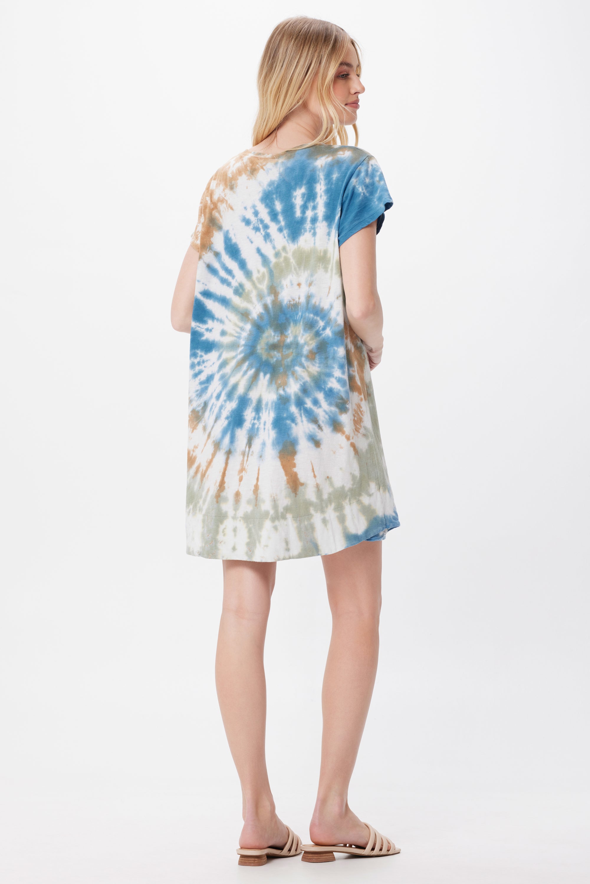 This playful mini dress features a vibrant tie-dye pattern and a relaxed fit, perfect for sunny beach days and summer adventures. Lightweight and breezy, it keeps you comfortable while adding a splash of fun to your warm-weather wardrobe.