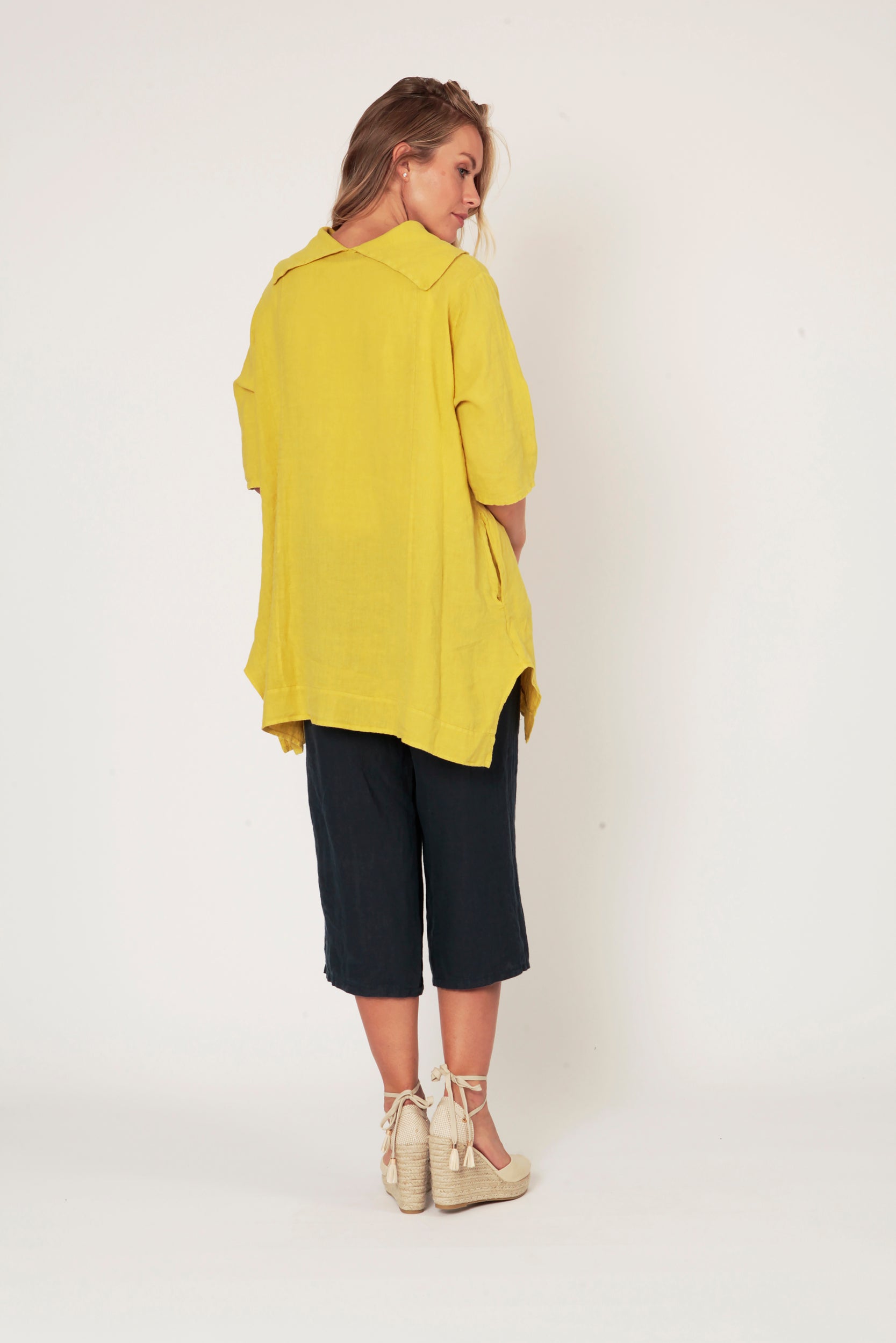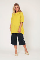 Let your inner sunshine shine with the Sierra Oversize Linen Tunic! This bright yellow delight is ideal for making a statement - you'll command attention with its elegant and loose fit.