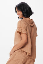 Sola Linen Cowl Neck Fringed Asymetric Top