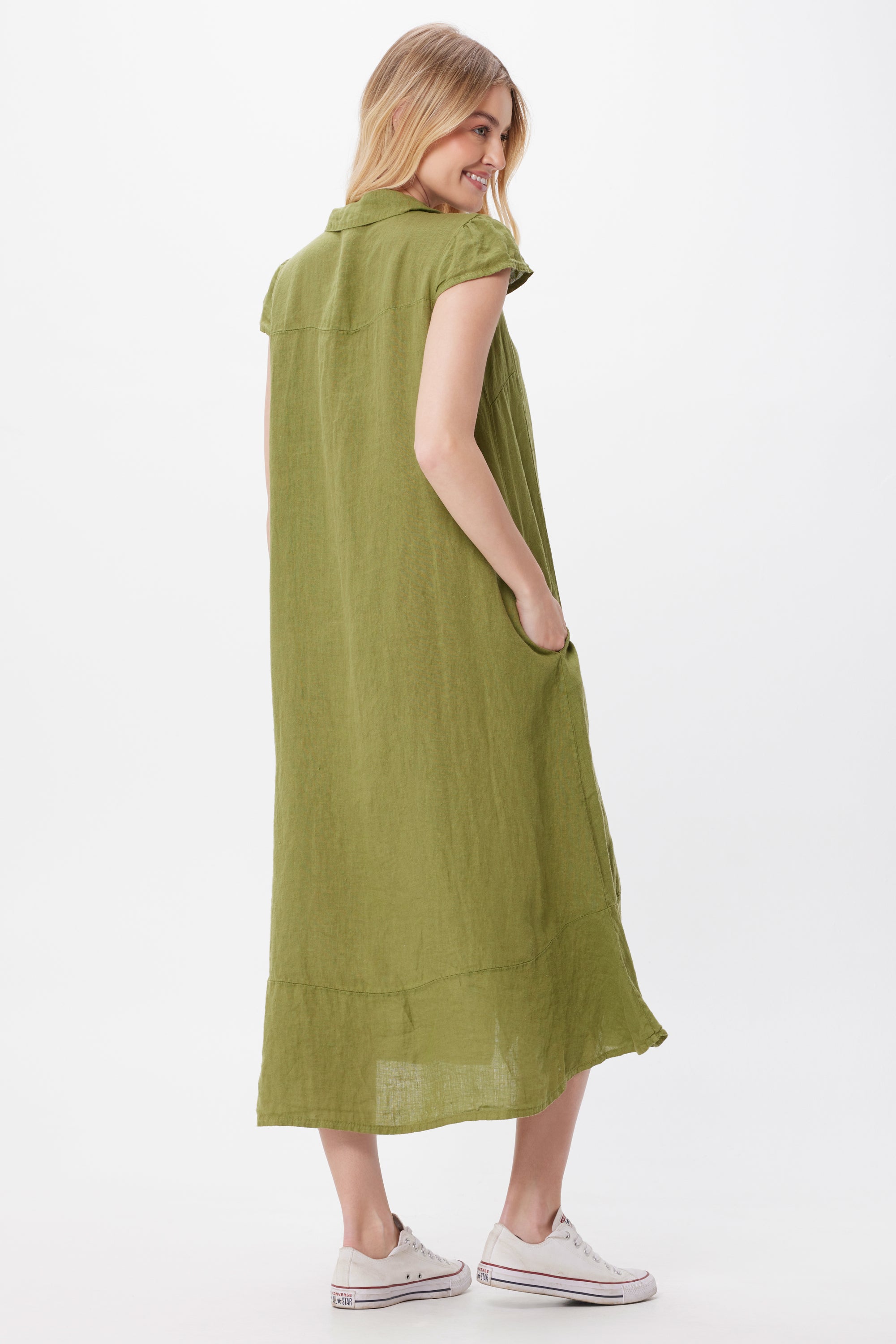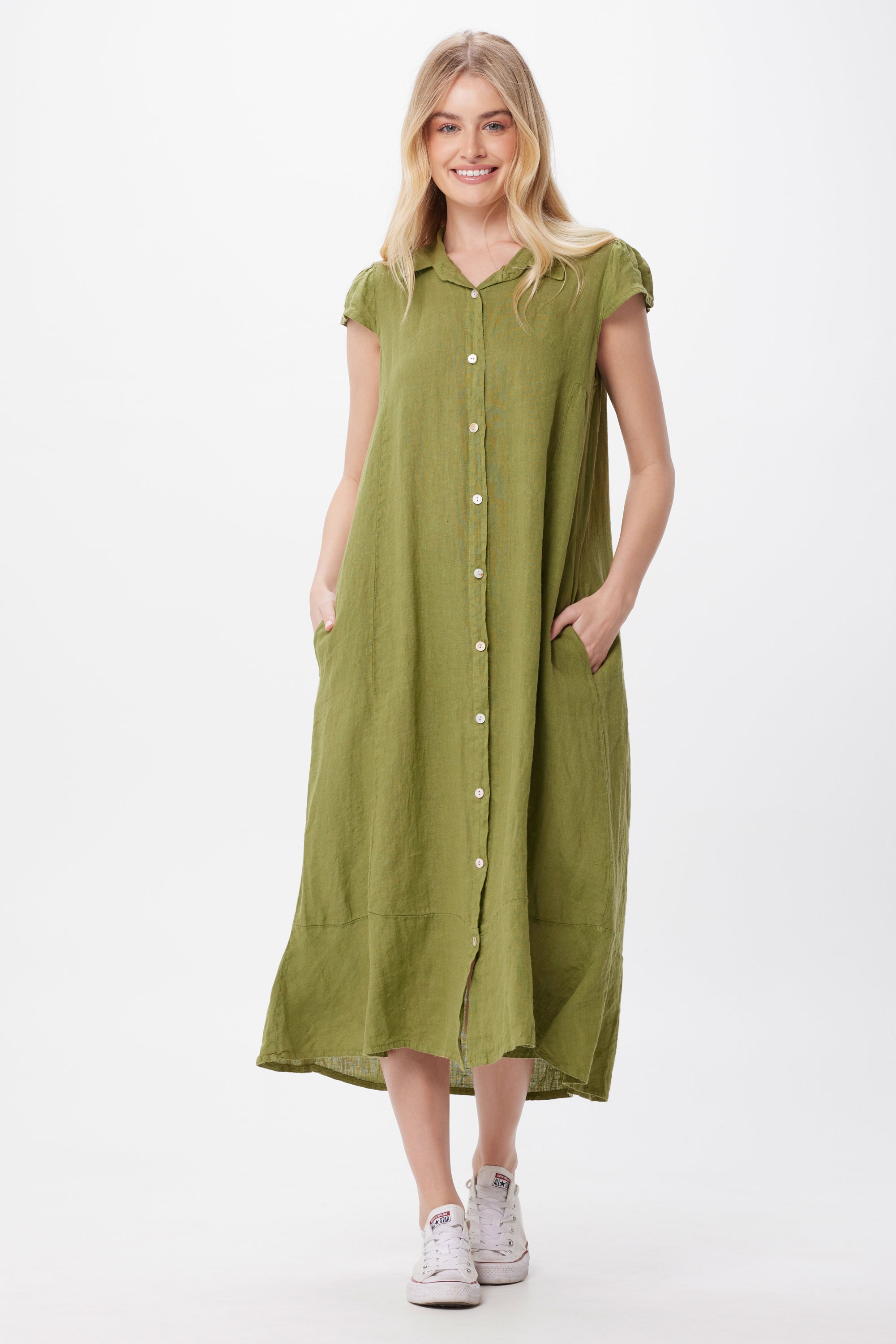 Solo Linen Cap Sleeve Button Thru Maxi Dress