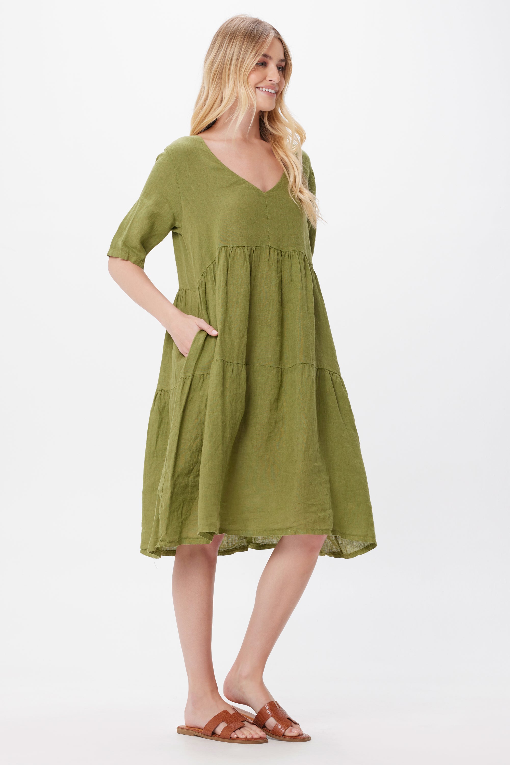 A simple, angelical piece. Featuring a V-neck shape and a waist-cut silhouette, this dress will look perfect teamed with nearly anything. It's all about ease and style.