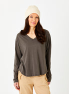 Slip into the Mariella Long Sleeve V-Neck Tee, your new go-to for cozy lounging with a cheeky twist. Crafted from soft cotton, this playful top offers a flattering V-neck that’s perfect for relaxing in style. Whether you’re unwinding at home or adding a casual vibe to your day, Mariella keeps comfort effortlessly chic.