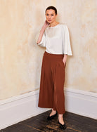 Step out in style with the Yamela Pleat Front Drape Culottes. These playful culottes feature a chic pleated front that adds a flattering drape, combining comfort with a trendy silhouette. Perfect for adding a fun twist to your wardrobe, they effortlessly elevate any outfit with a touch of flair.