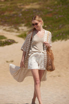 Florencia Stripe Crochet Long Knit Open Cardigan
