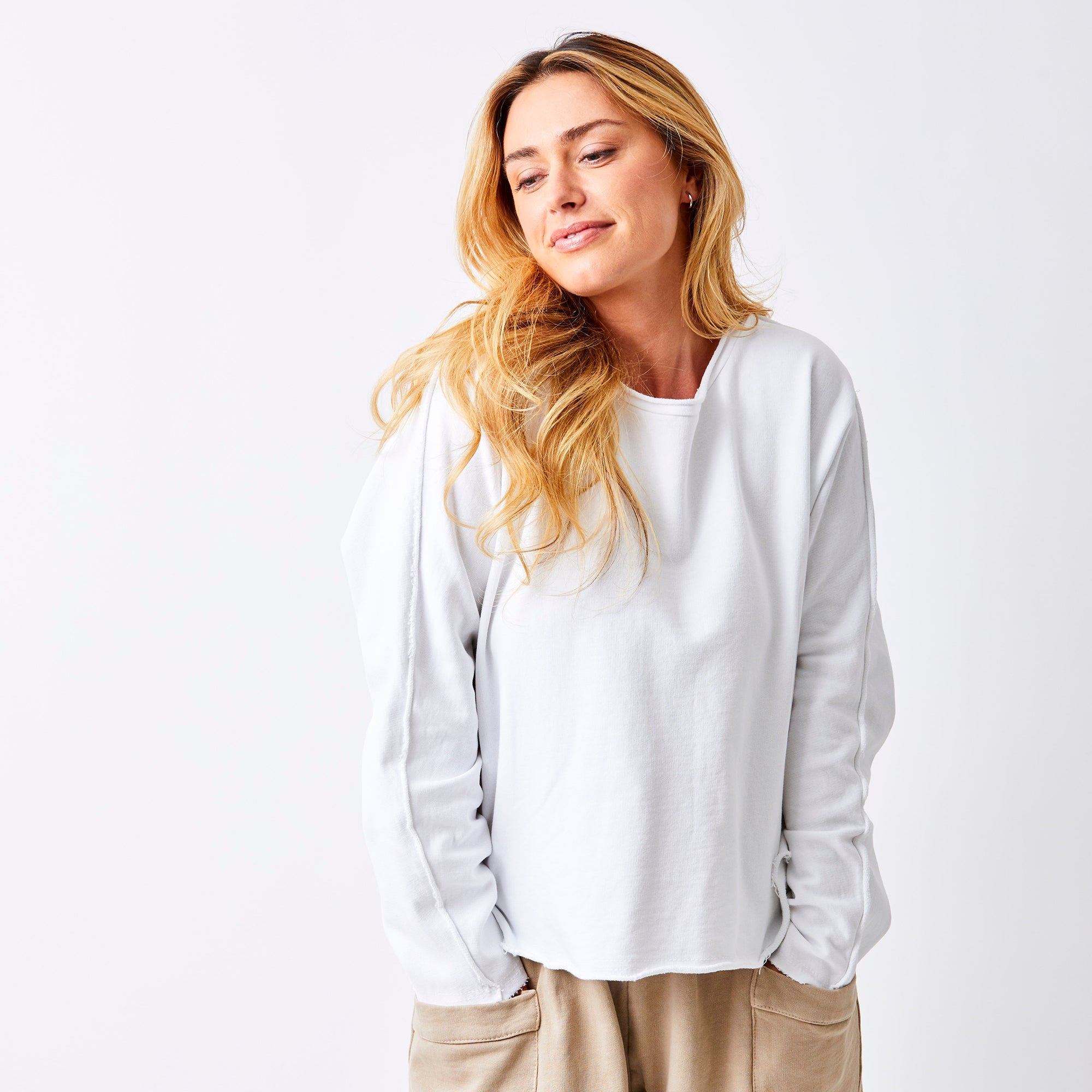 Sink into pure comfort with the Wan Rolled Neck Sweatshirt. This laid-back essential features a cosy rolled neck that frames your face beautifully, paired with trendy raw edges for an effortlessly cool finish. Perfect for those days when you want to feel snug without sacrificing style—throw it on with your favourite jeans and you're ready to go.