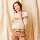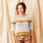 Faylin Open Weave Round Neck Knit with Stripes