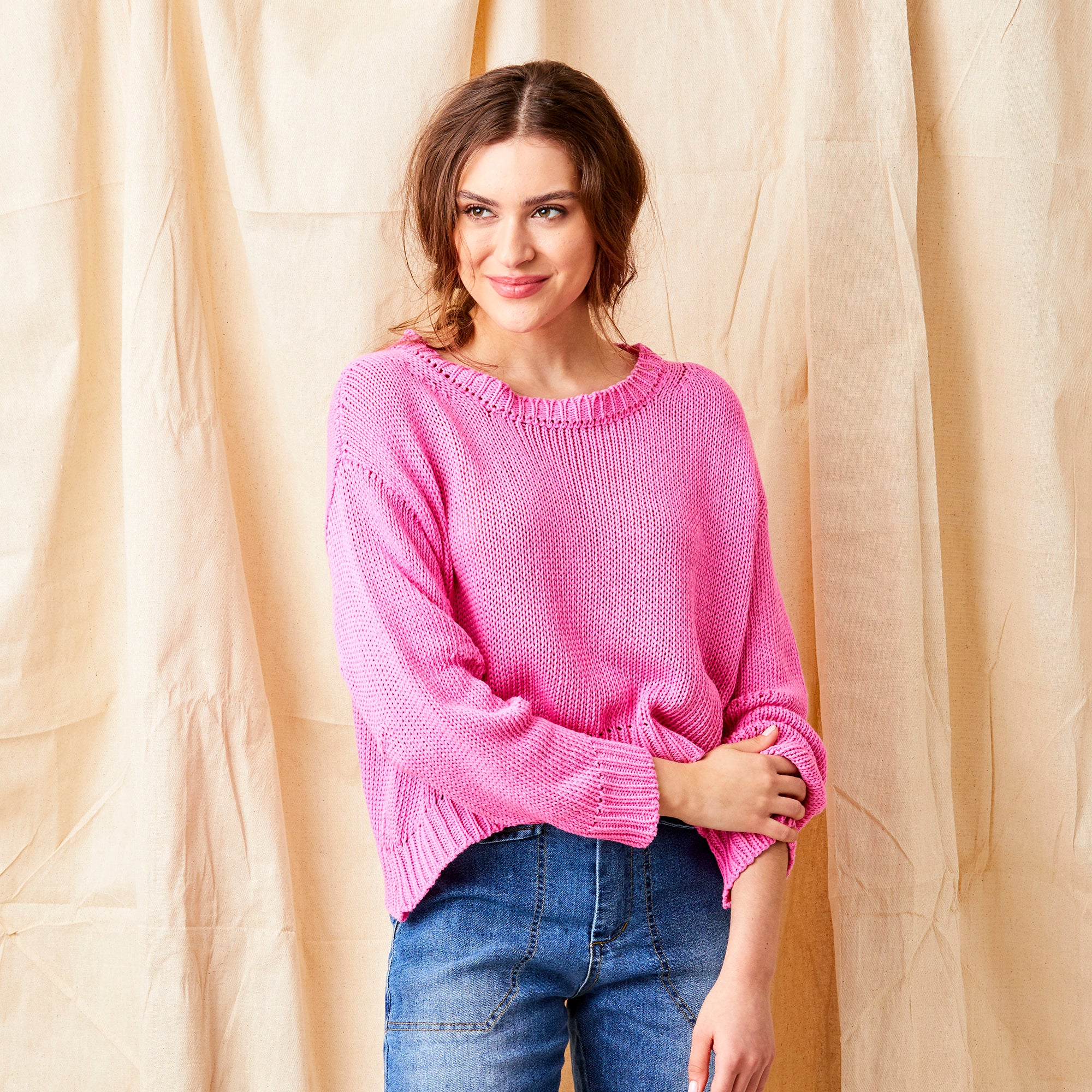 Wolfie Curved Hem Cotton Knit Sweater