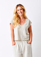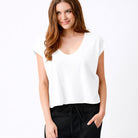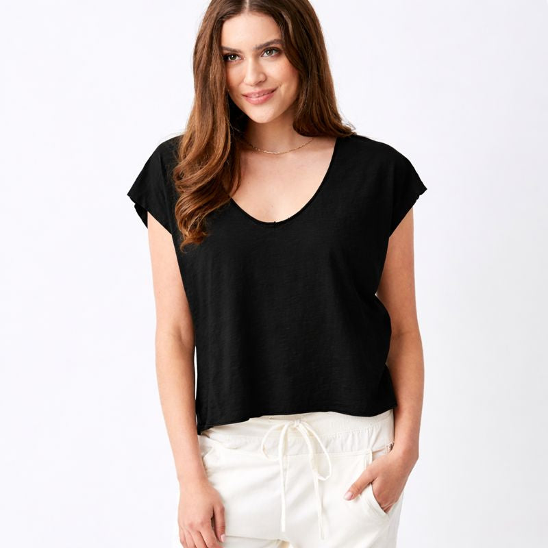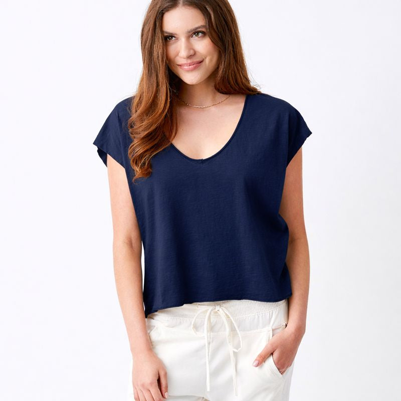 Get cozy in the Bali V-Neck Tee, featuring a trendy raw edge detail that adds a touch of effortless cool. Perfect for lounging or casual days, this tee blends comfort with a playful edge to keep your style relaxed and fun.