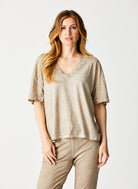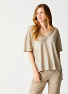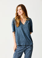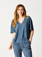The Barnaby Vintage Wash Tee is a must-have addition to your off-duty looks this season. This oversized soft cotton tee is one of Suzy D's best sellers, loved for its relaxed fit and exceptional comfort. It features a low V-neck with three buttons at the side, adding an extra touch of detail and style. Available in three vintage-style washes, the Barnaby Tee retains the same softness that makes it perfect for any casual occasion.