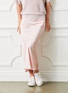 Versatile and easy to wear, the Gene Satin Skirt pairs beautifully with trainers and a jumper. For a more formal occasion, style it with a satin tank top to create an effortlessly feminine outfit. Available in a range of soft, neutral shades, this skirt is a must-have addition to any wardrobe.