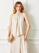 Goldina Satin Halter Neck Sleeveless Top