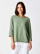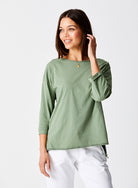 The Jardine tee is a perfect blend of simplicity and elegance, making it a timeless staple for any wardrobe. This loose-fitting top features 3/4 length sleeves, providing a relaxed and comfortable fit. Its effortless style makes it easy to wear with joggers for a boho, relaxed look or with jeans and tailored trousers for those occasions when you're heading out for lunch or looking for easy outfitting.