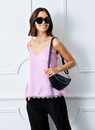 The Kami Lace Trim Camisole is a stunning piece from the satin collection, designed to add a touch of elegance to any outfit. Featuring a low V-neck, fine delicate straps, and a beautiful lace trim, this camisole is the epitome of femininity.