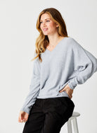 Versatile and effortlessly stylish, the Lenny Double V Neck Batwing Knit Sweat can be paired with joggers for a cosy, loungewear look. Alternatively, wear it with jeans or tailored trousers for a laid-back formal outfit. Whether you're lounging at home or stepping out, the Lenny Double V Neck Batwing Knit Sweat ensures you stay comfortable and chic.
