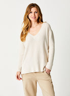 Layer up with the Lusty Double V Ribbed Knit Sweater, featuring a relaxed fit and double V neck design. Perfect for cooler evenings, this sweater will keep you warm and stylish.