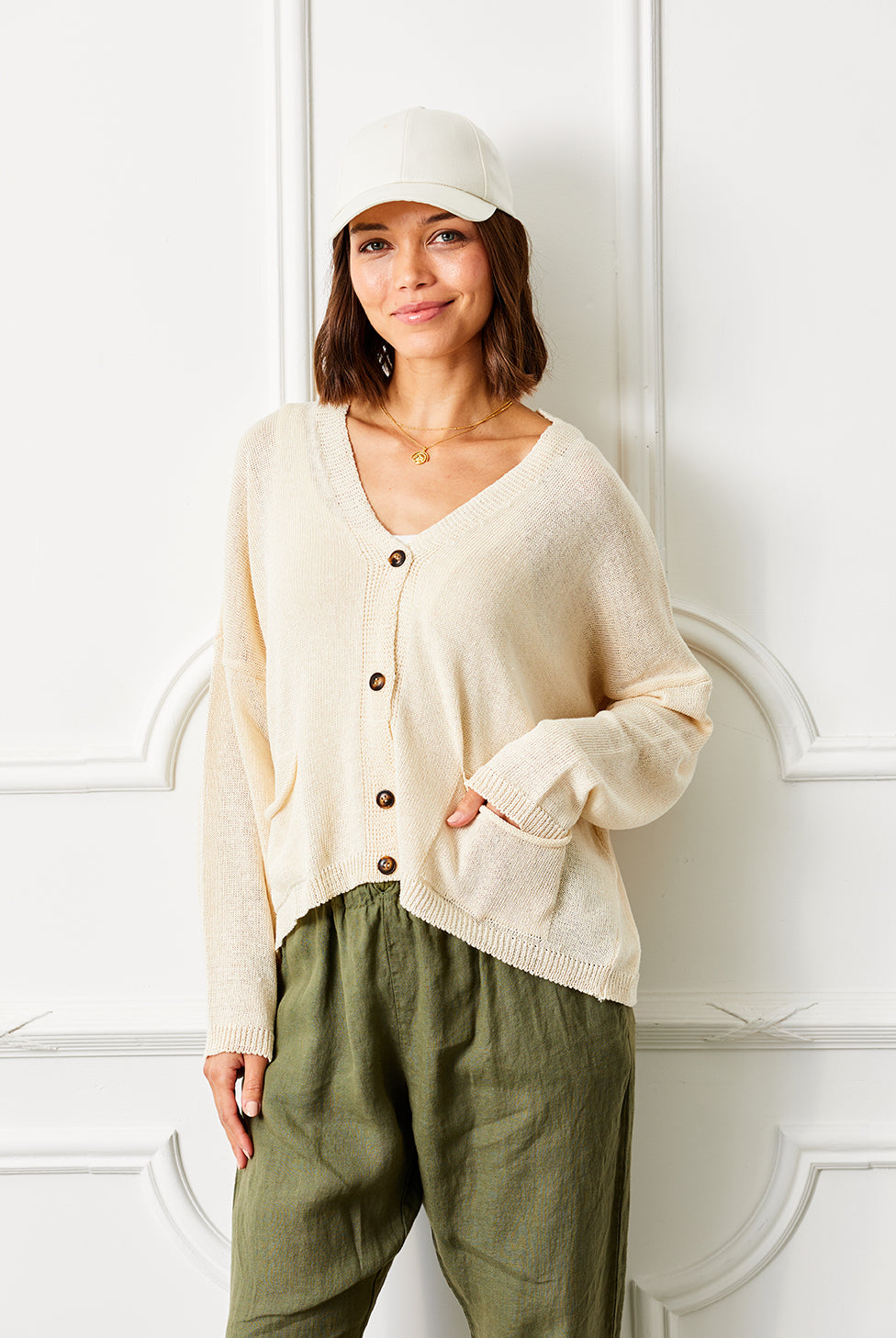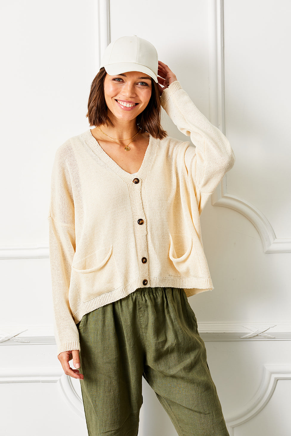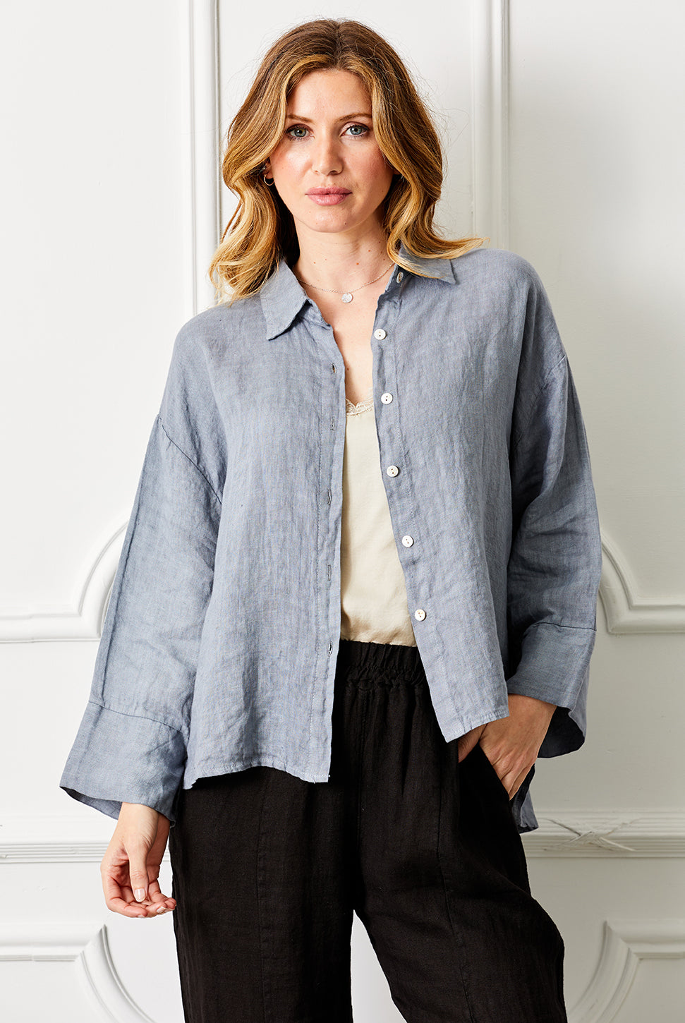 Yvonne Vintage Wash V Neck Button Top