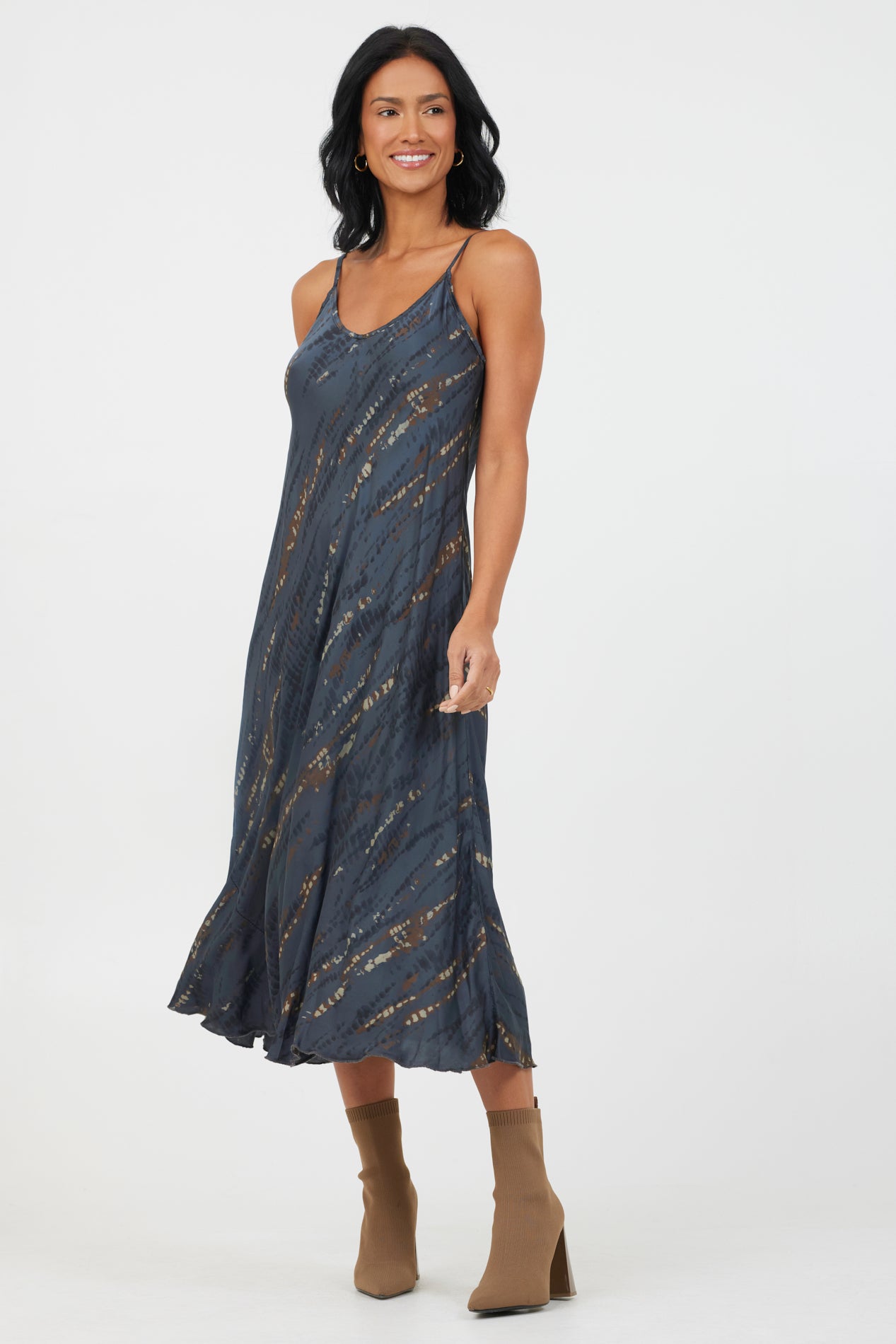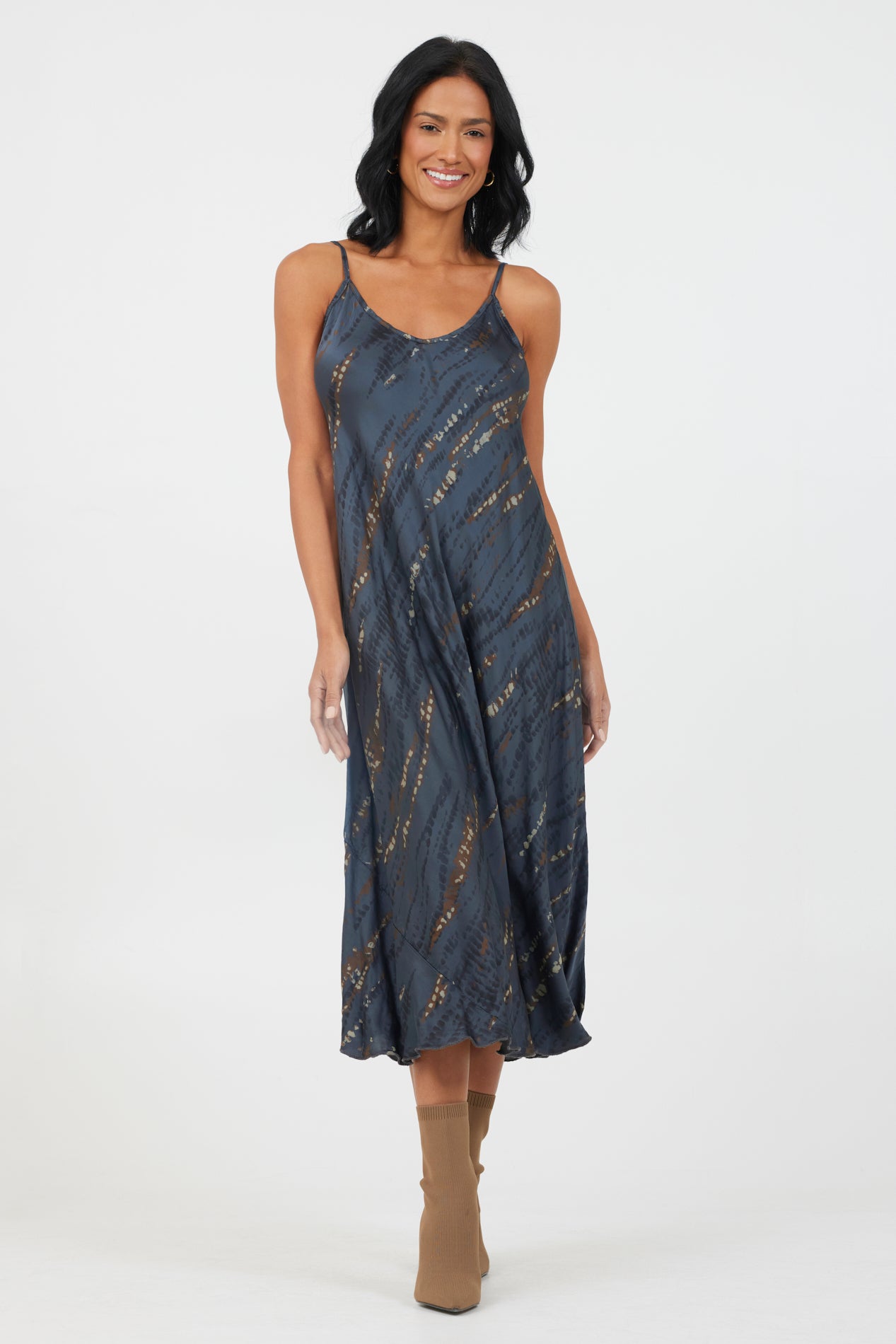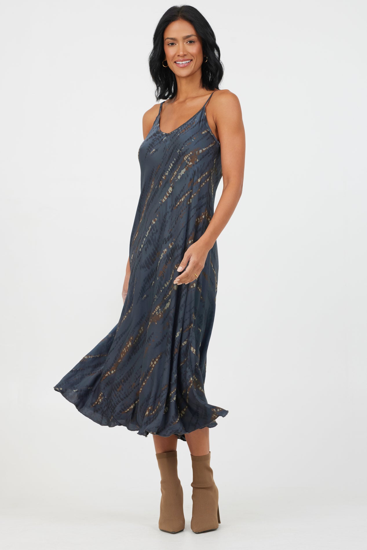 Available in three prints combining neutral shades and tonal patterns, the Bari satin print slip dress is your new wardrobe hero. Effortlessly stylish and figure-flattering, the midi length of this dress will give the illusion of longer legs when worn with heels. Slightly looser across the torso and hips, the soft satin fabric will skim your hips and give an element of movement to show off your curves.