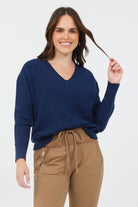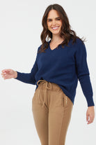Franklin V Neck Rib Hem Soft Knit Sweater