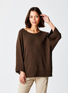 Introducing the Fermina Kimono Sleeve Sweater, a delicate and lightweight knit that is perfect for the right now and throughout the spring/summer season. This sweater is designed with an oversized, loose fit and features a longline hem and slightly cropped loose sleeves, making it an ideal piece for layering and transitional dressing as the weather warms up.