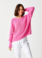 The Floretta Crew Neck Knit is a beautifully lightweight piece, designed with open yarn for an airy, breathable feel. Featuring a crew neck and a loose fit, this knit offers relaxed comfort while maintaining an elegant silhouette. The fitted sleeves can be styled with a turn-up or balloon effect, adding versatility to your casual wardrobe. Its loose hem makes it ideal for various styling options, from casual loungewear with joggers to more polished outfits.