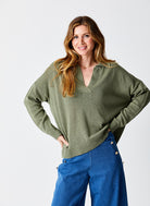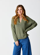 The Florita V-Neck Knit is a timeless piece that seamlessly blends preppy style with weekend comfort. Featuring a stylish V-neck and a classic polo collar, this top is perfect for effortlessly chic, off-duty dressing.