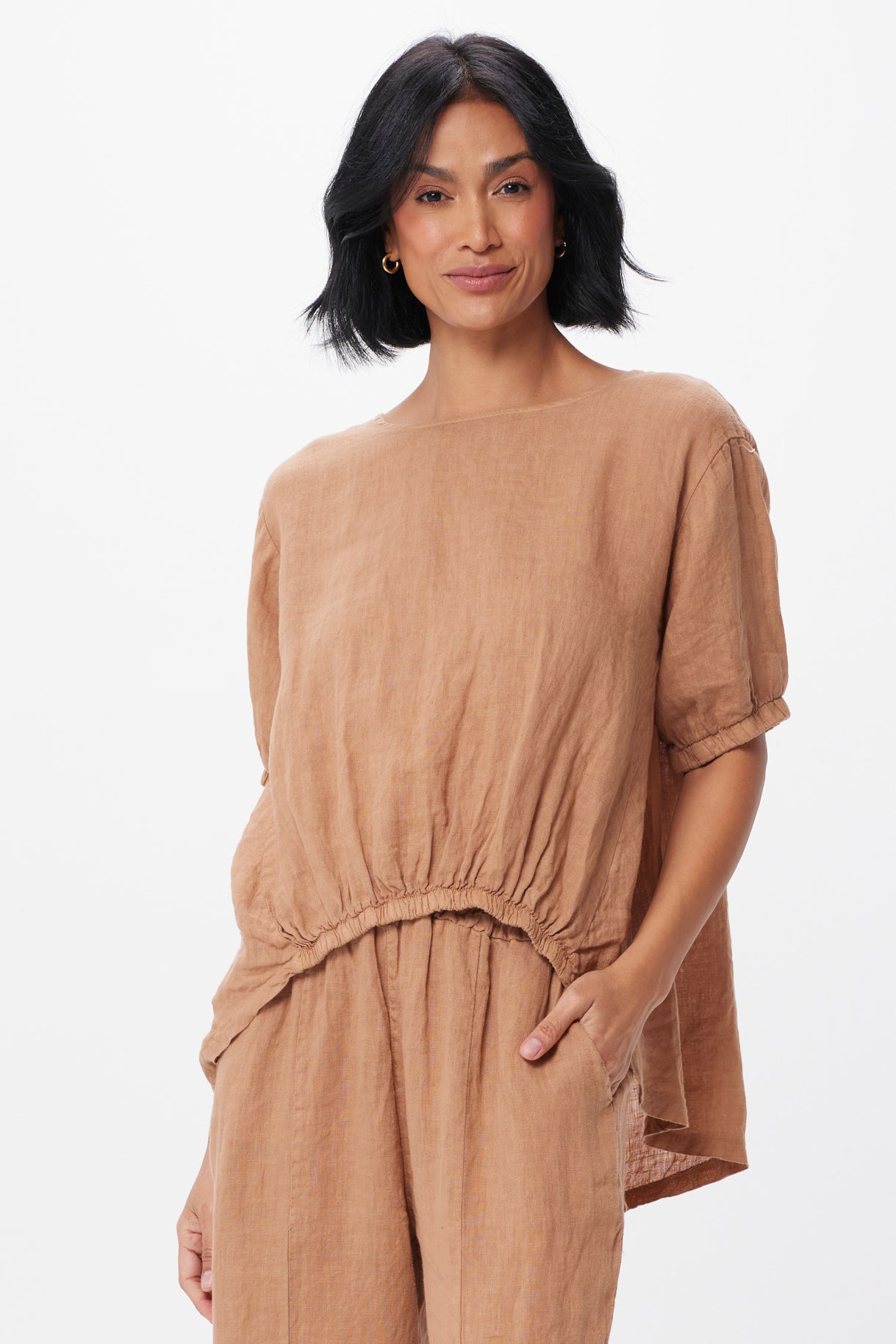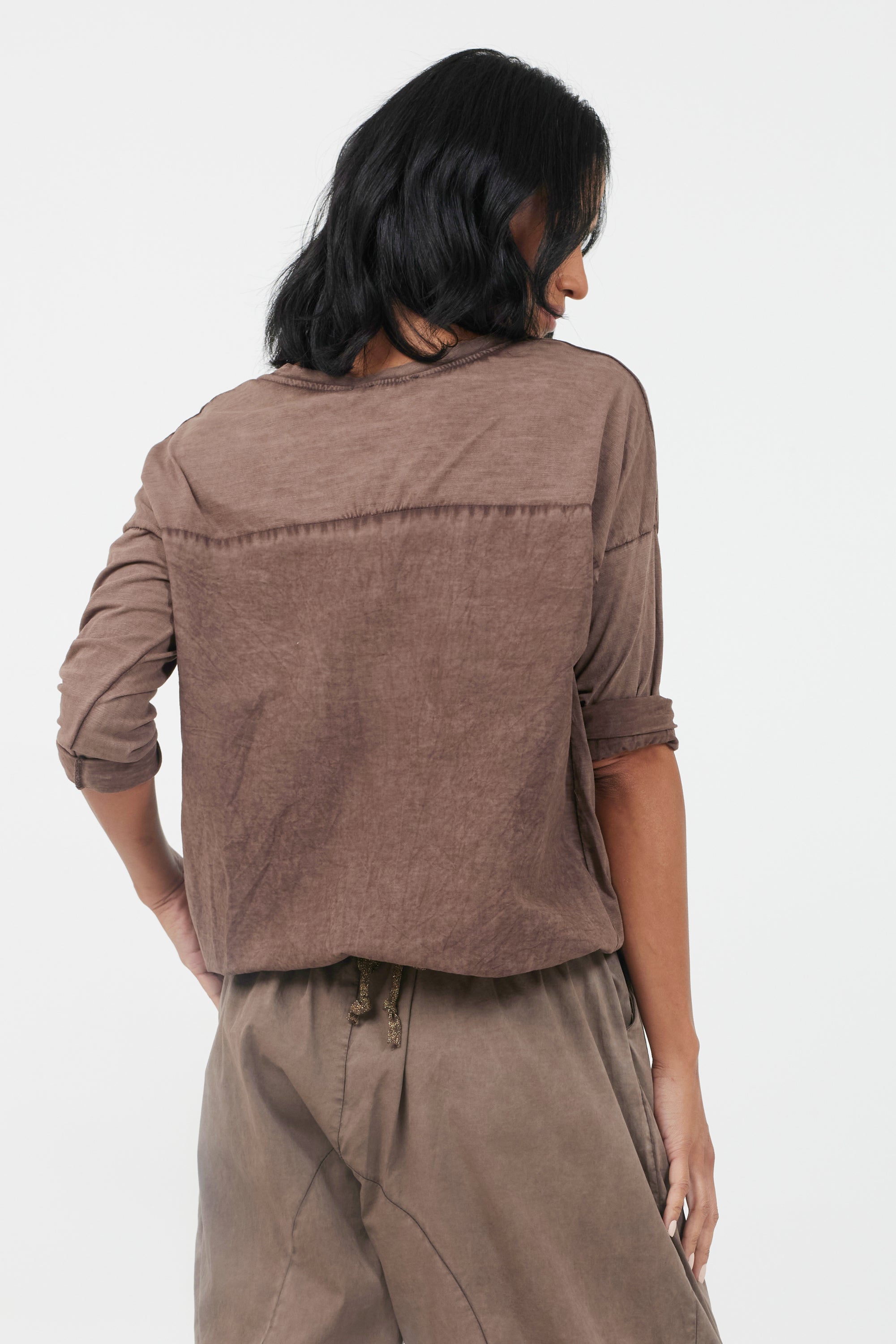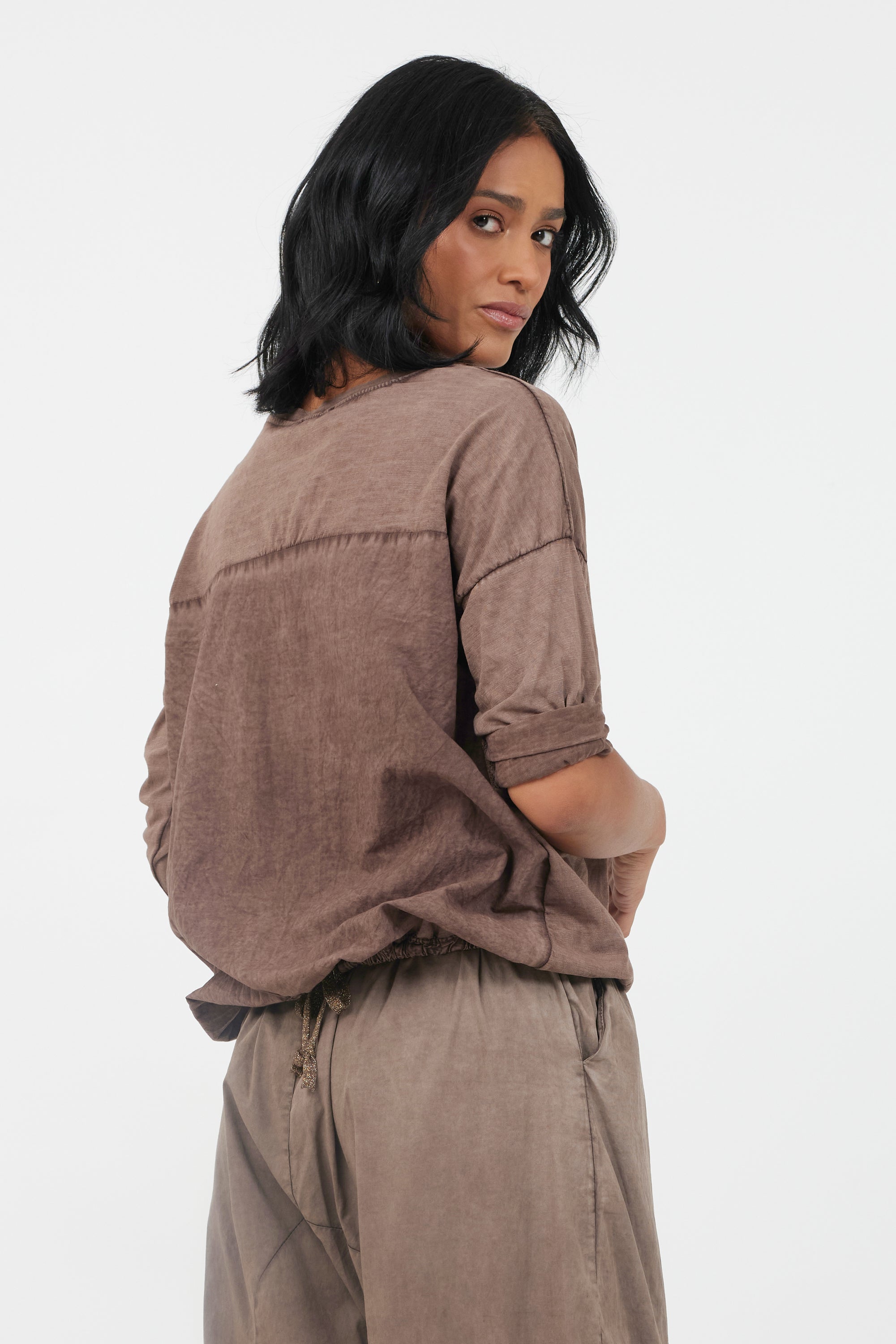 Yakira Vintage Wash Drawstring Hem Top