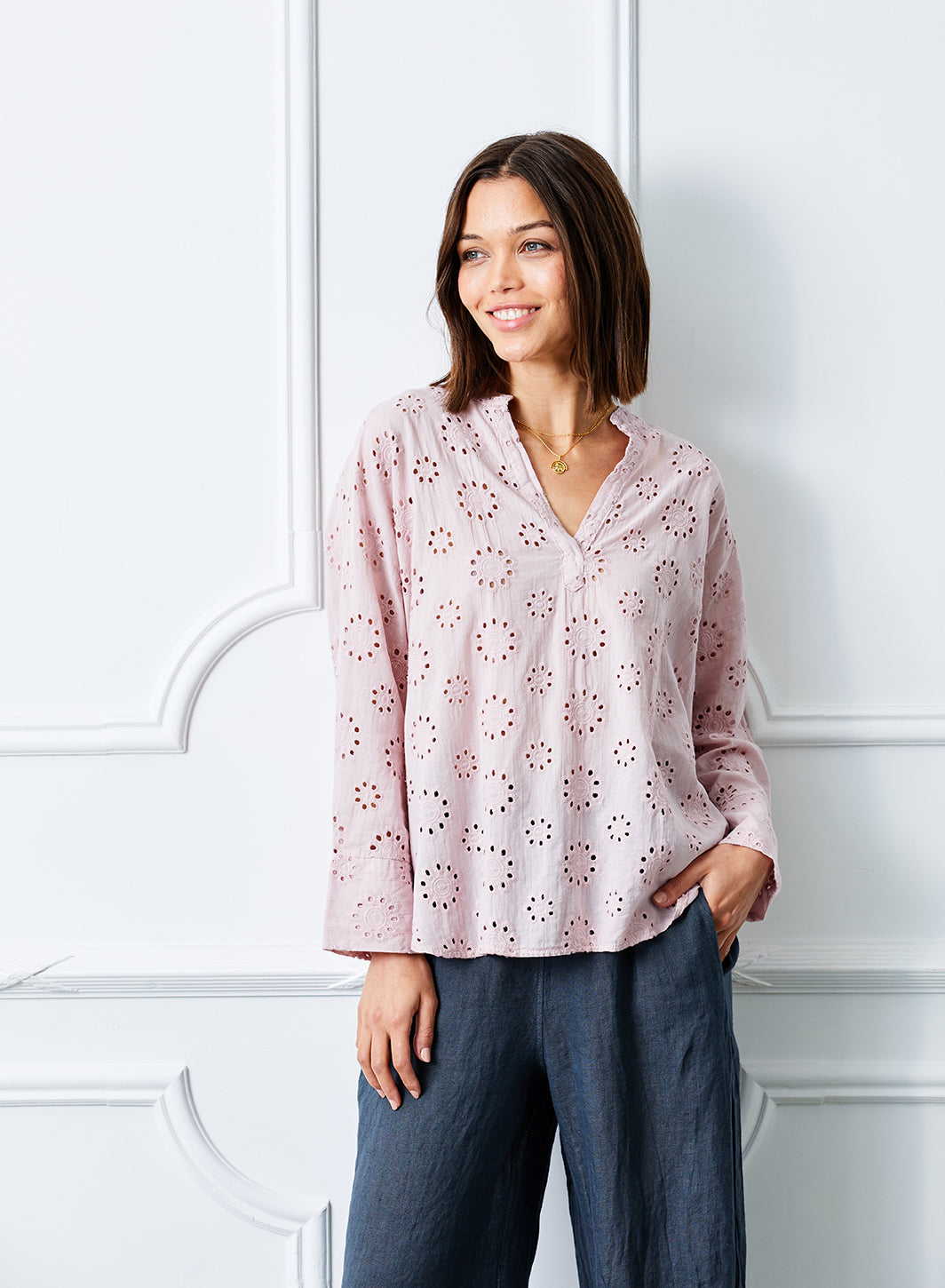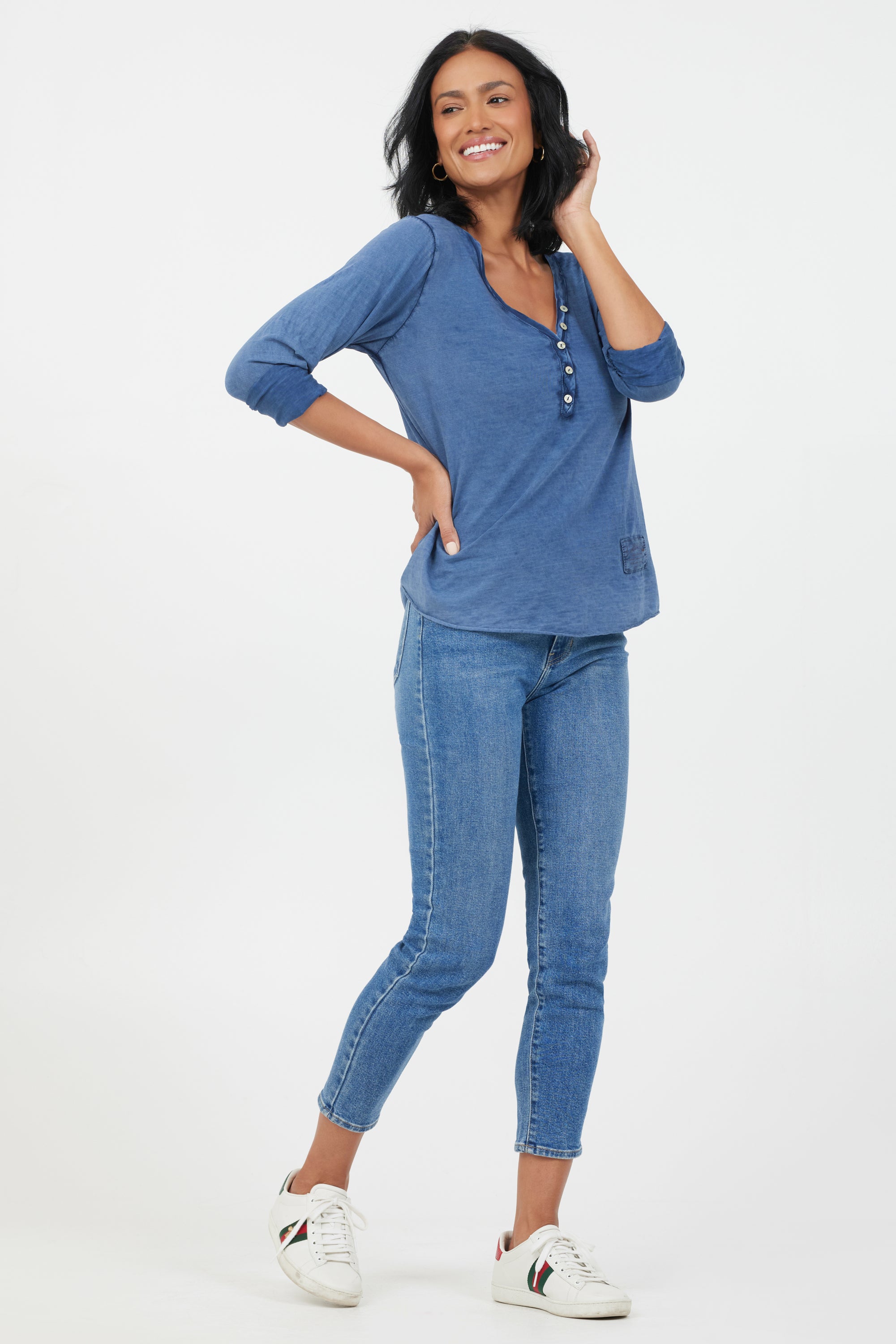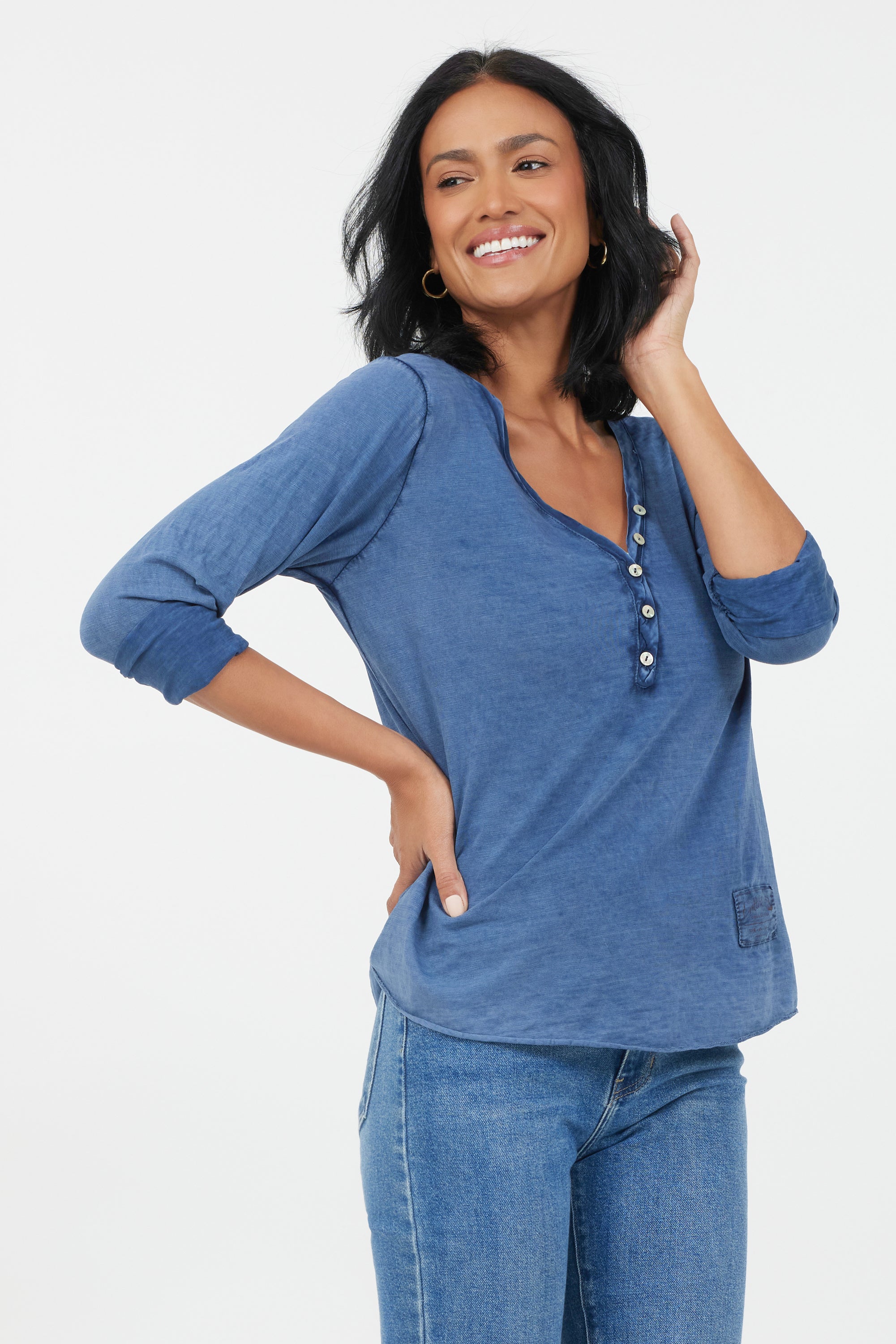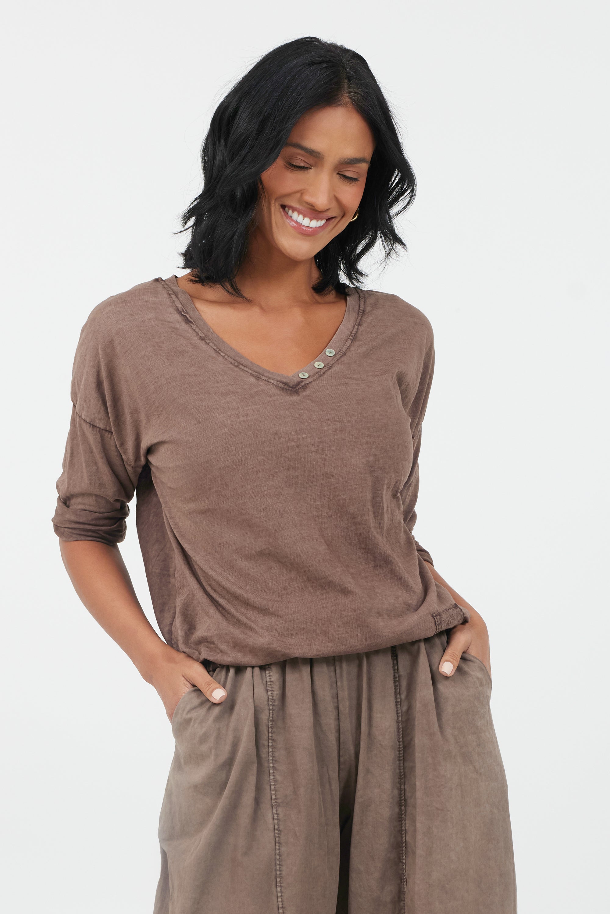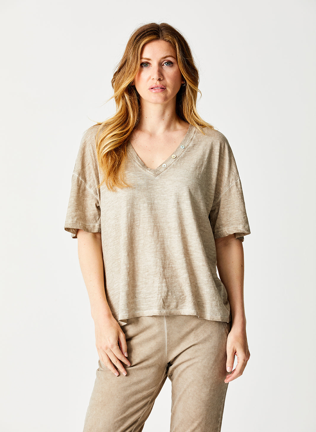 Yvonne Vintage Wash V Neck Button Top