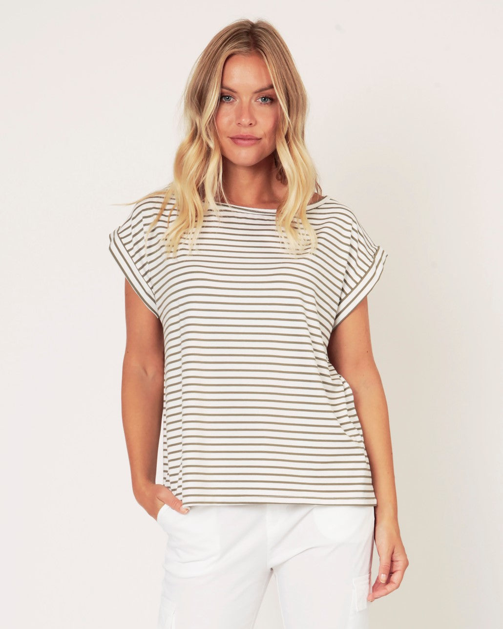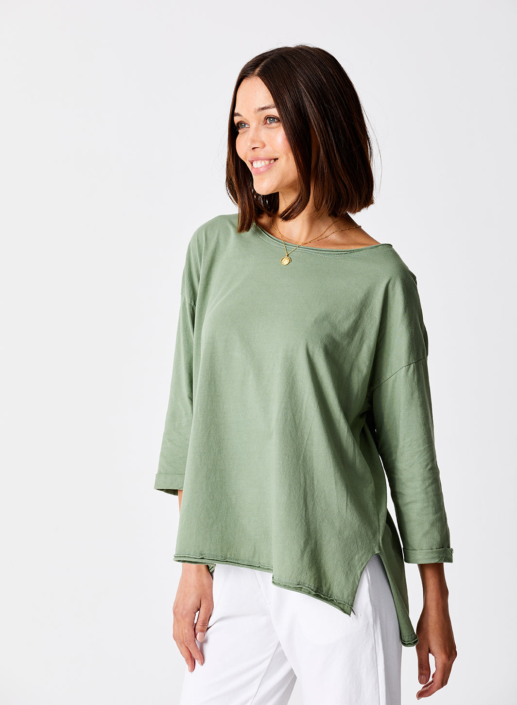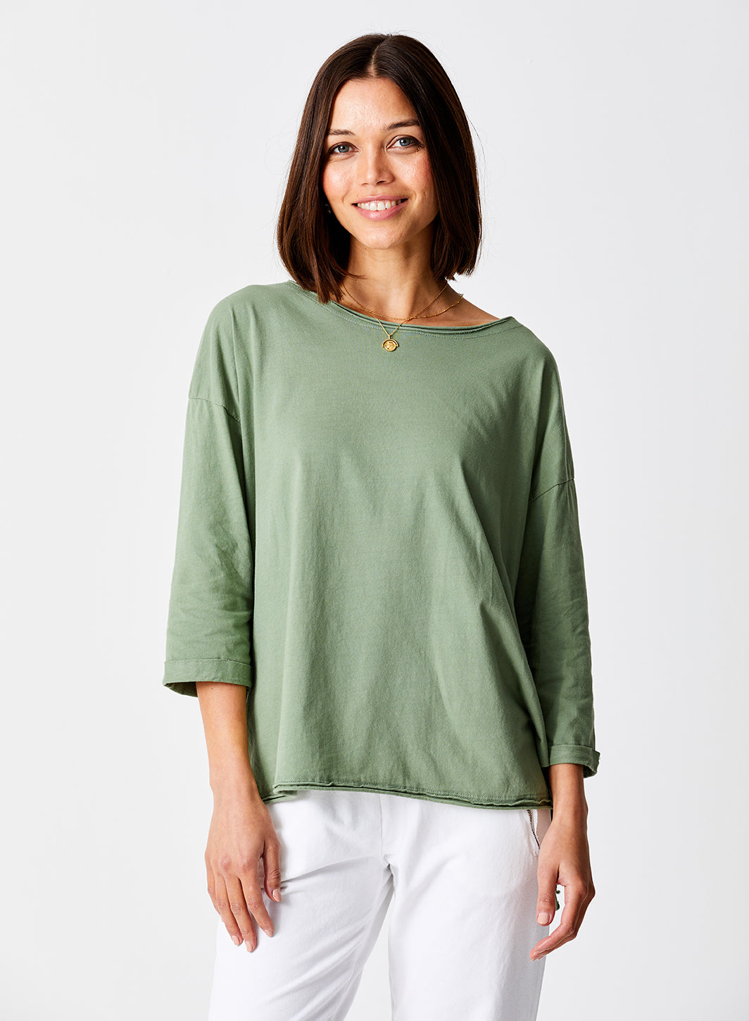 Lorenzo Linen Jersey Slash Neck top
