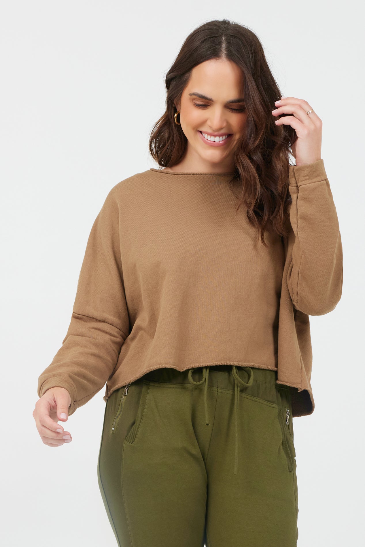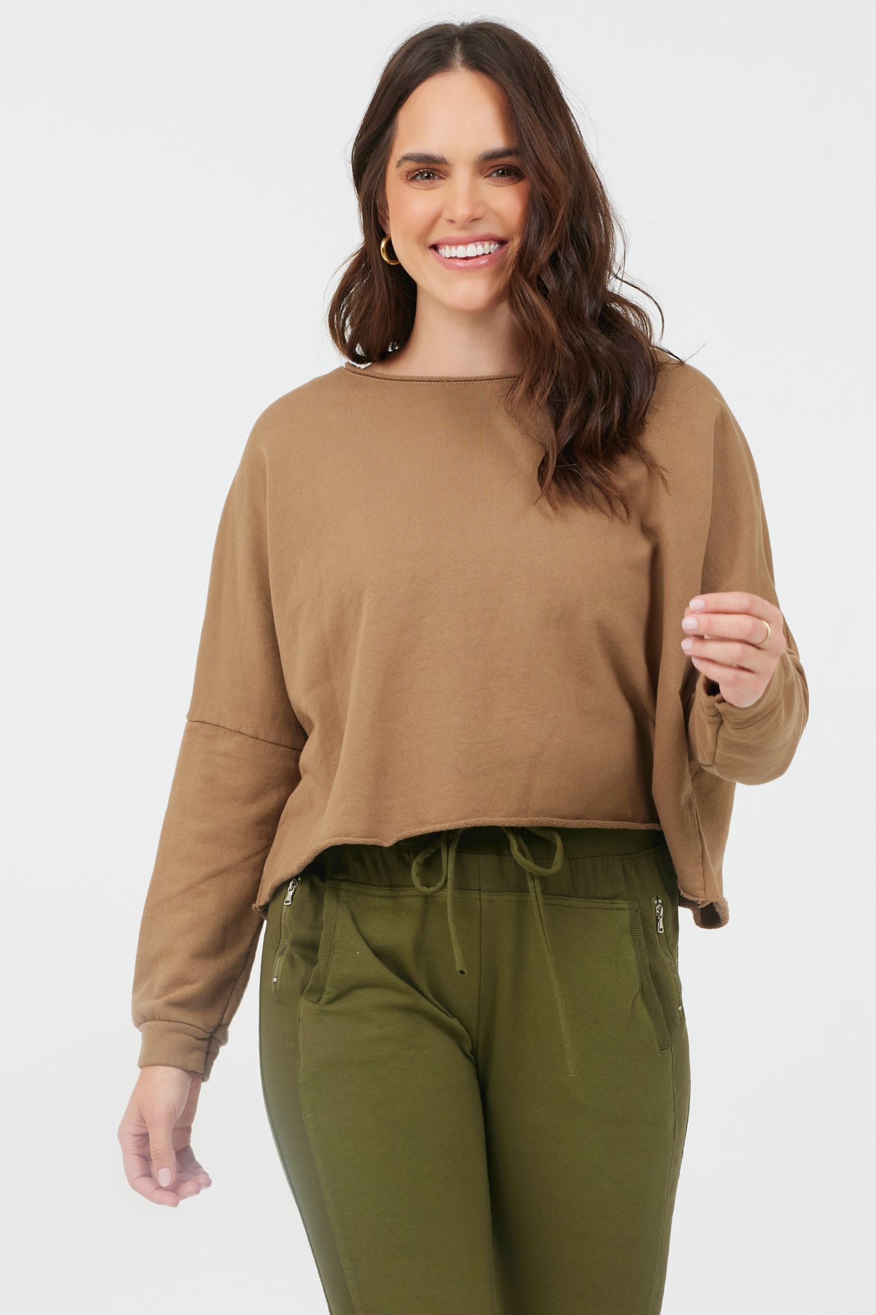 Maeve Cropped Raw Edge Sweatshirt