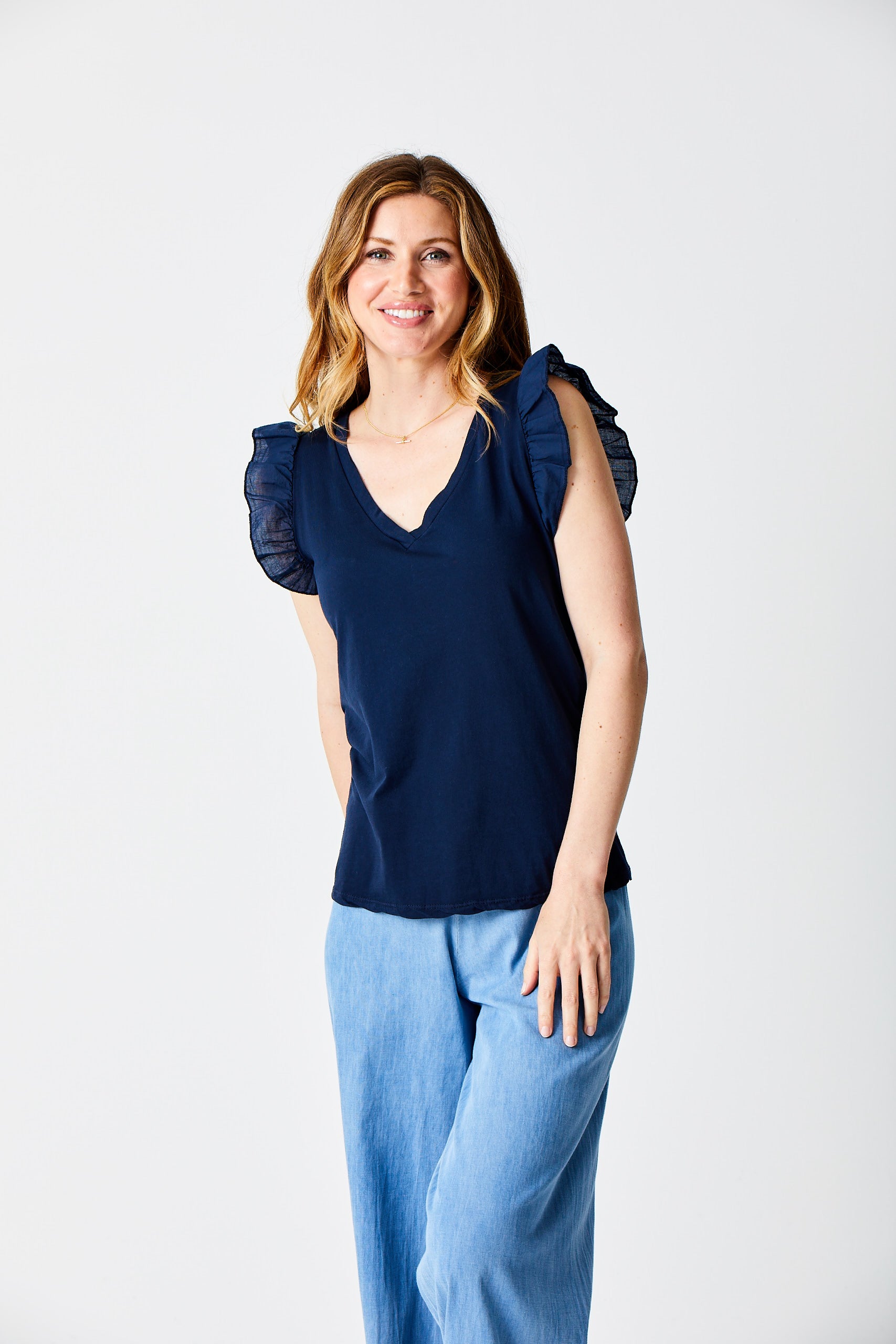 Maria Cotton V Neck Tee