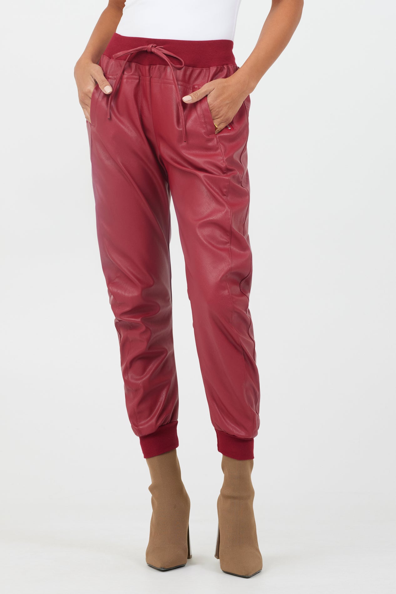 Embrace edgy sophistication with our Faux Leather Ultimate Joggers. Crafted from a luxe vegan fabric, these joggers combine the sleek look of leather with the comfort of a jogger. The premium faux leather offers a bold, modern edge, while the flexible fabric ensures a comfortable fit and effortless movement. Perfect for adding a touch of glam to your casual wear or making a statement on a night out, these joggers redefine urban chic with every wear.